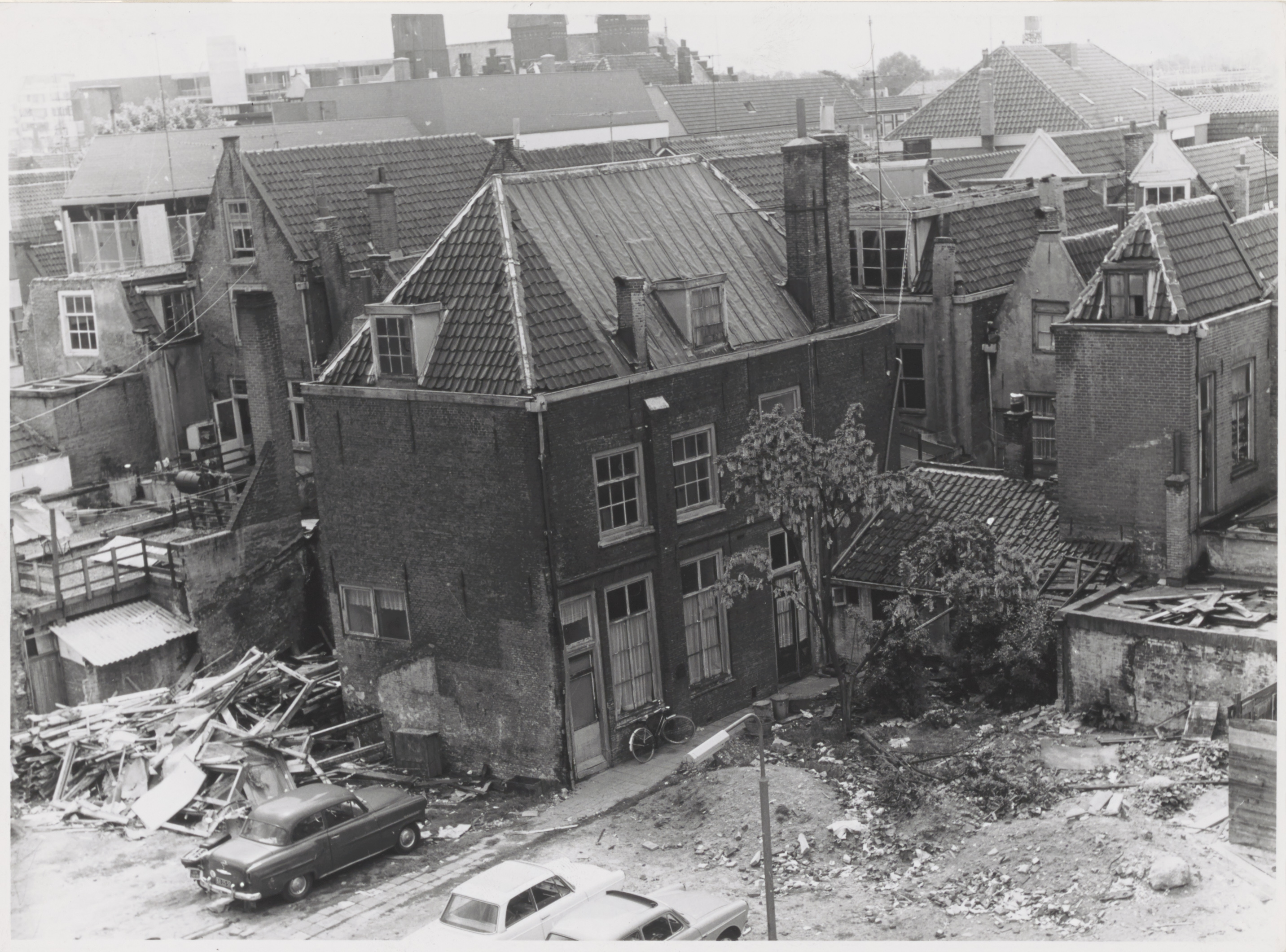 - Sloop van woningen om plaats te maken voor het Statenplein. Deze woningen stonden aan de Gevulde Gracht. In de achtergrond links de toren van C&A en twee torens van het postkantoor op het Bagijnhof.