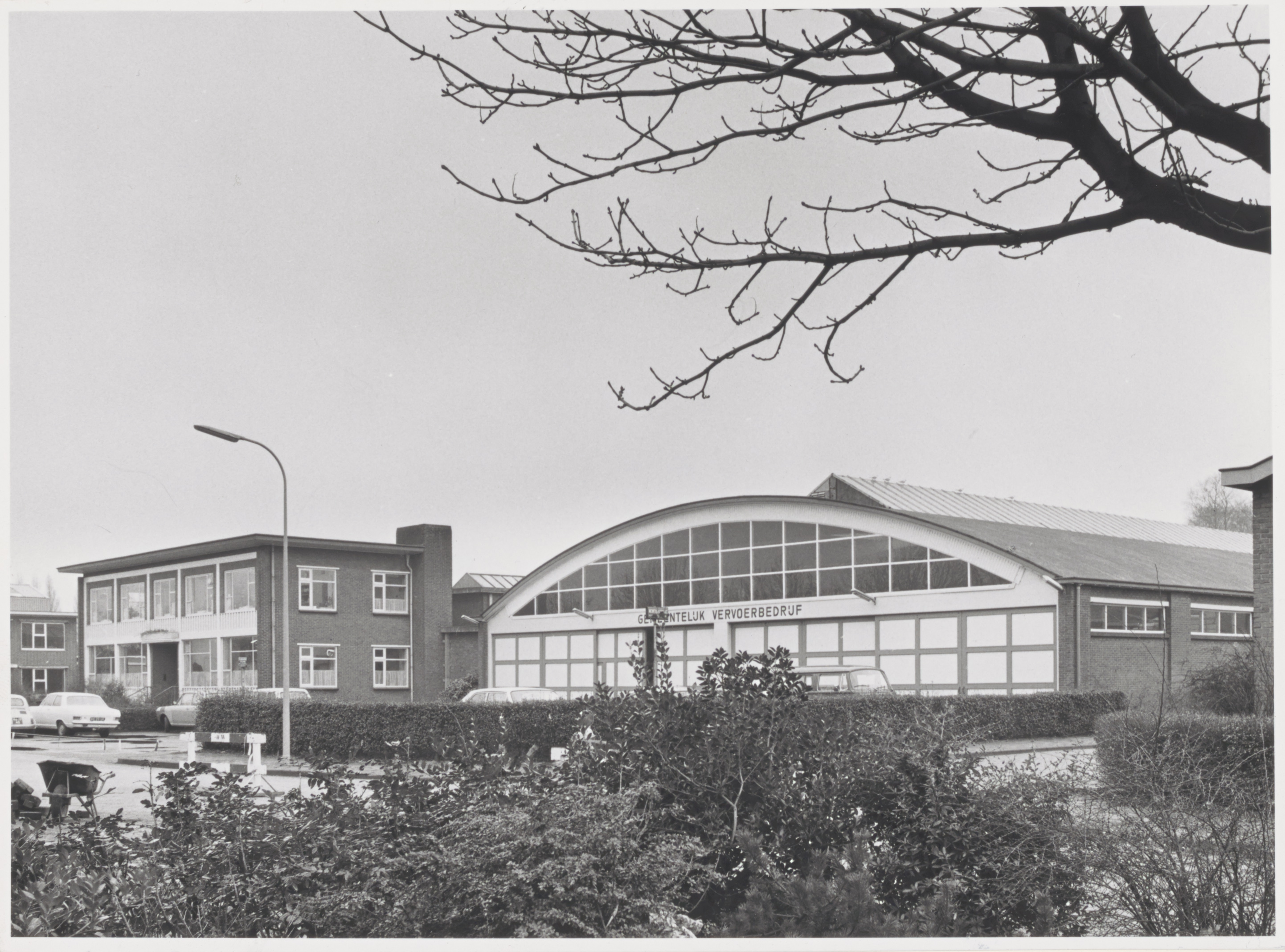 Kantoor en busremise van het Gemeentelijk Vervoerbedrijf in de Nijverheidstraat.