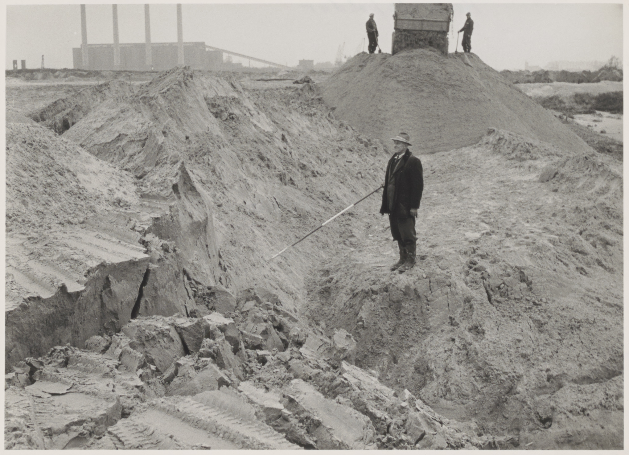 - Met zand opgespoten terrein aan de Baanhoekweg voor de bouw van de Dupont-fabriek. De Merwedecentrale op de achtergrond.