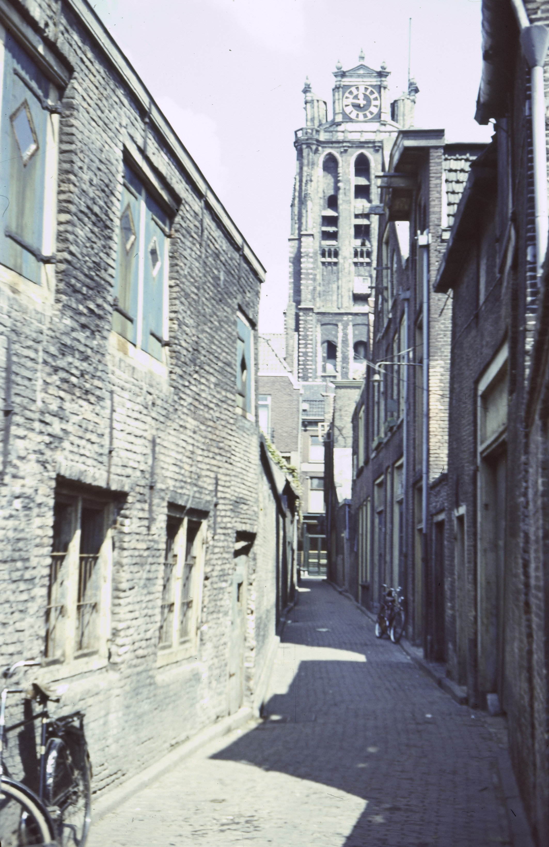 - Molenstraat richting Voorstraat, kijkend op de Grote Kerk.