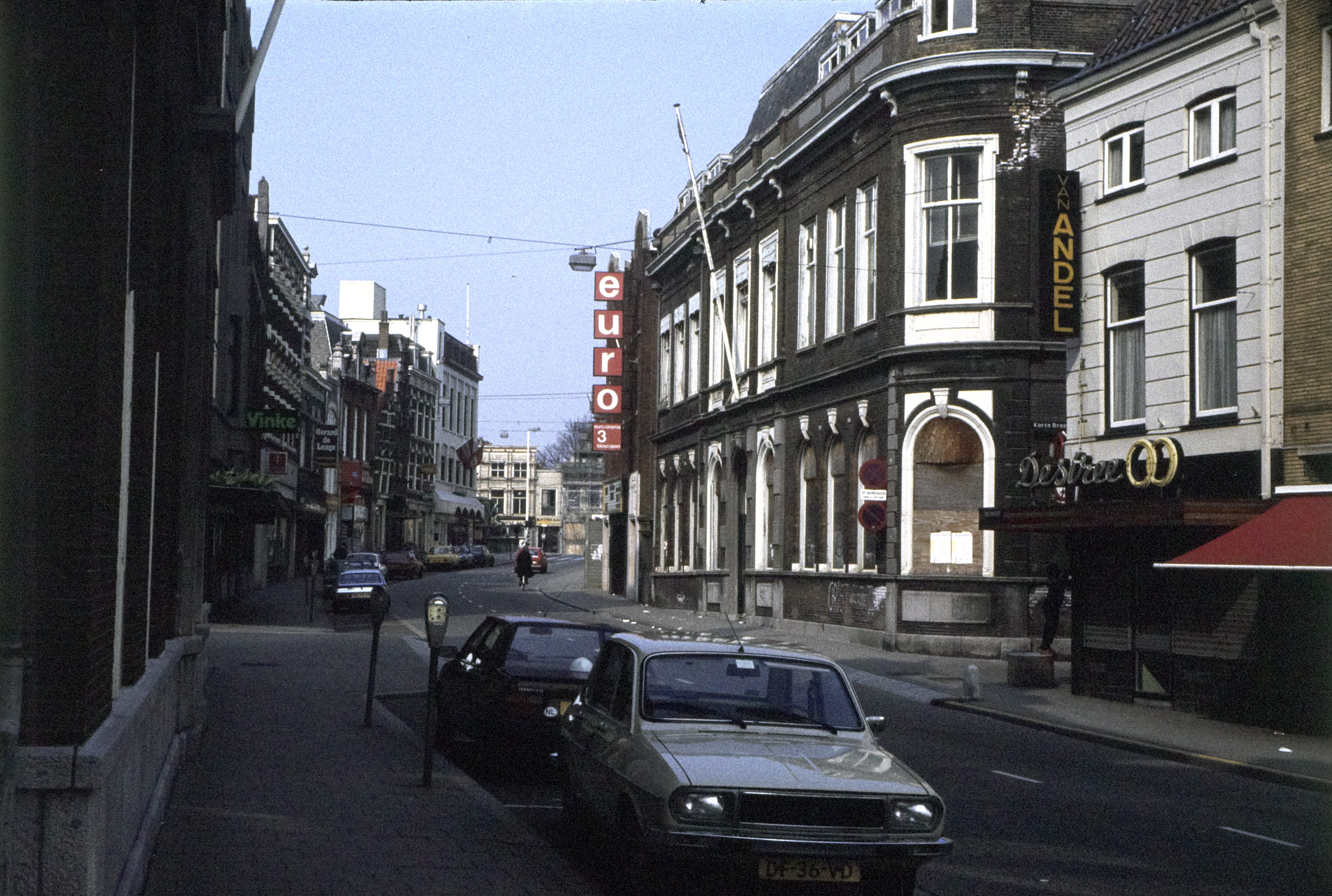 - Het Bagijnhof met de Visstraat in het verlengde ervan. Rechts vooraan bij juwelier Van Andel de Korte Breestraat, er tegenover de Lange Breestraat. Bebouwing op de achtergrond is de Groenmarkt. Links achteraan kledingzaak Overwijn, rechts bioscoop Euro Cinema.