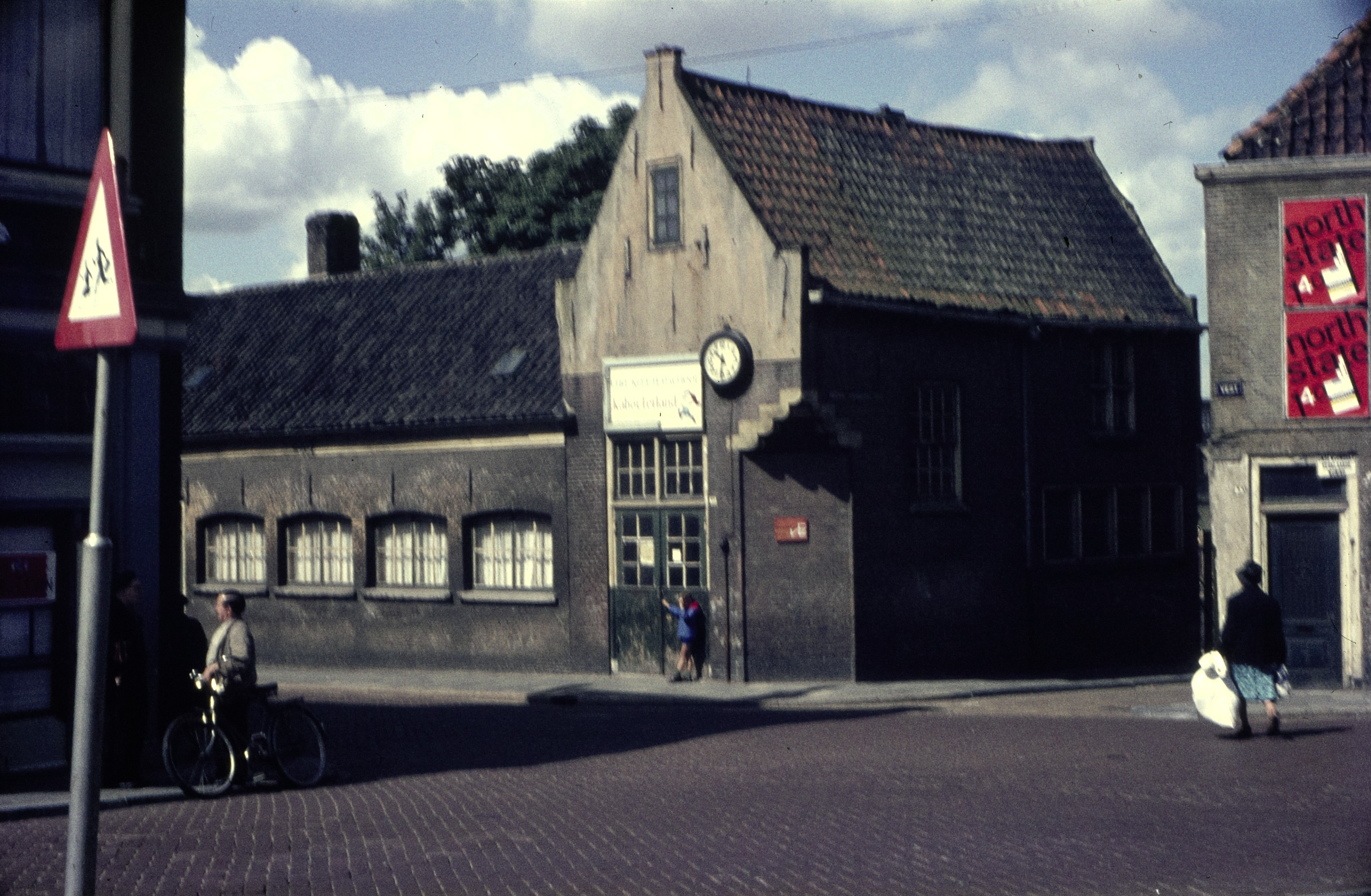 De christelijke Kleuterschool Kabouterland op de hoek Vest/Heer Heymansuysstraat. Links banketbakker Scheepers.