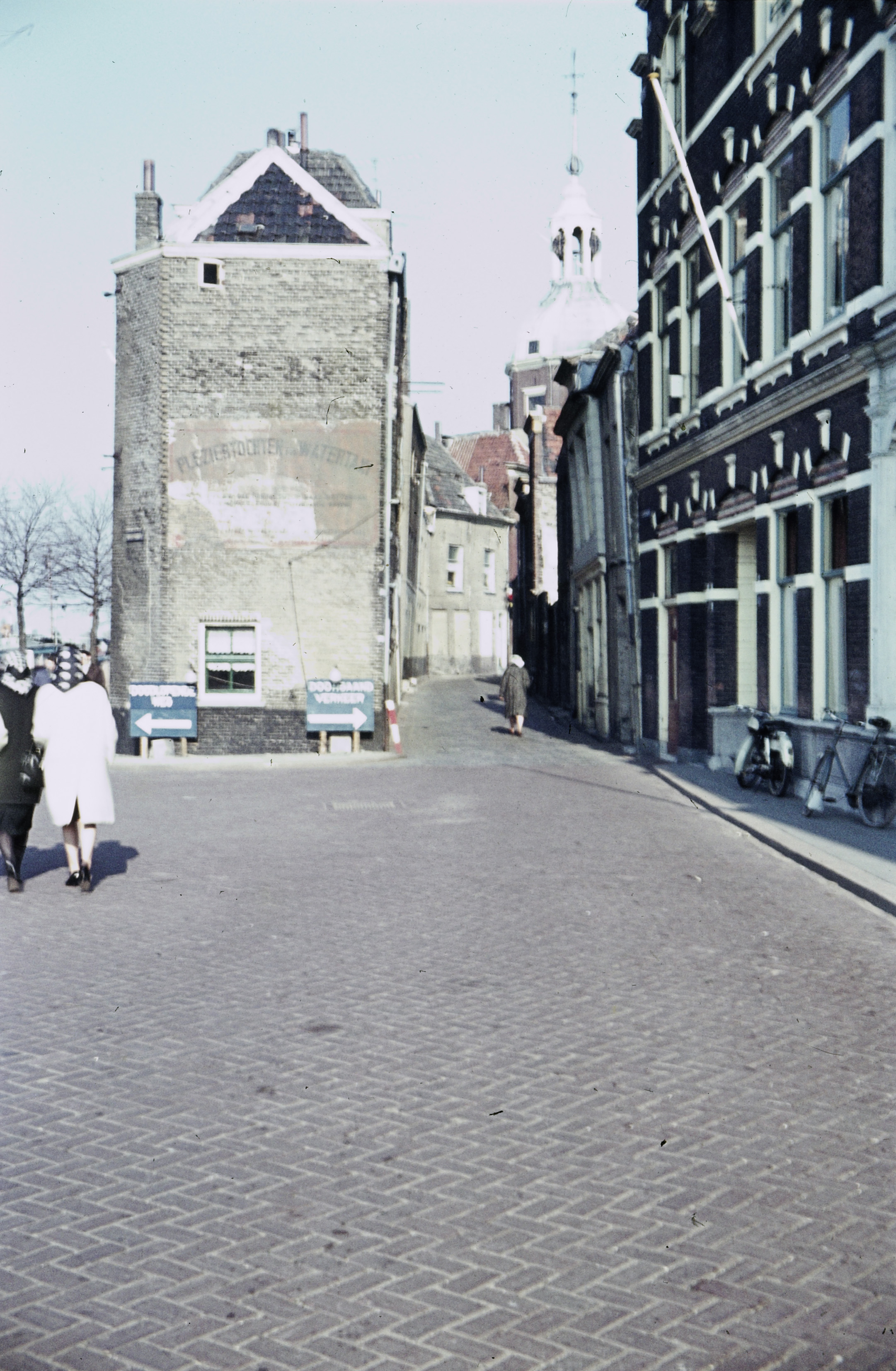 De Kuipershaven richting Groothoofd (links) en Palingstraat. De Groothoofdspoort op de …