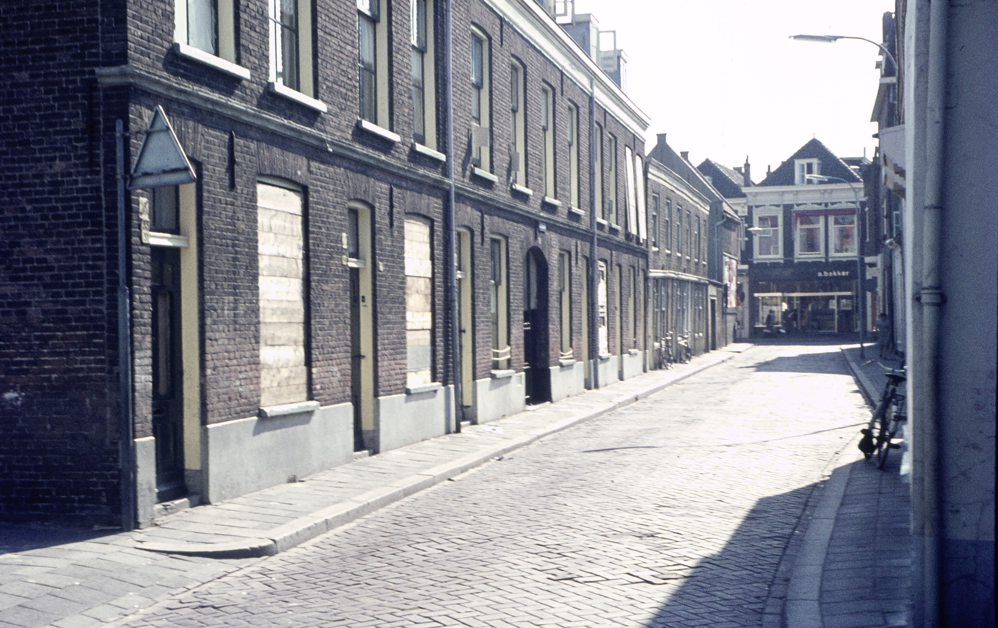 Lijstenfabriek en kunsthandel A. Bakker, Spuiweg 48 op de achtergrond. Poortje links (nr 23) is ingang Kwekershof.