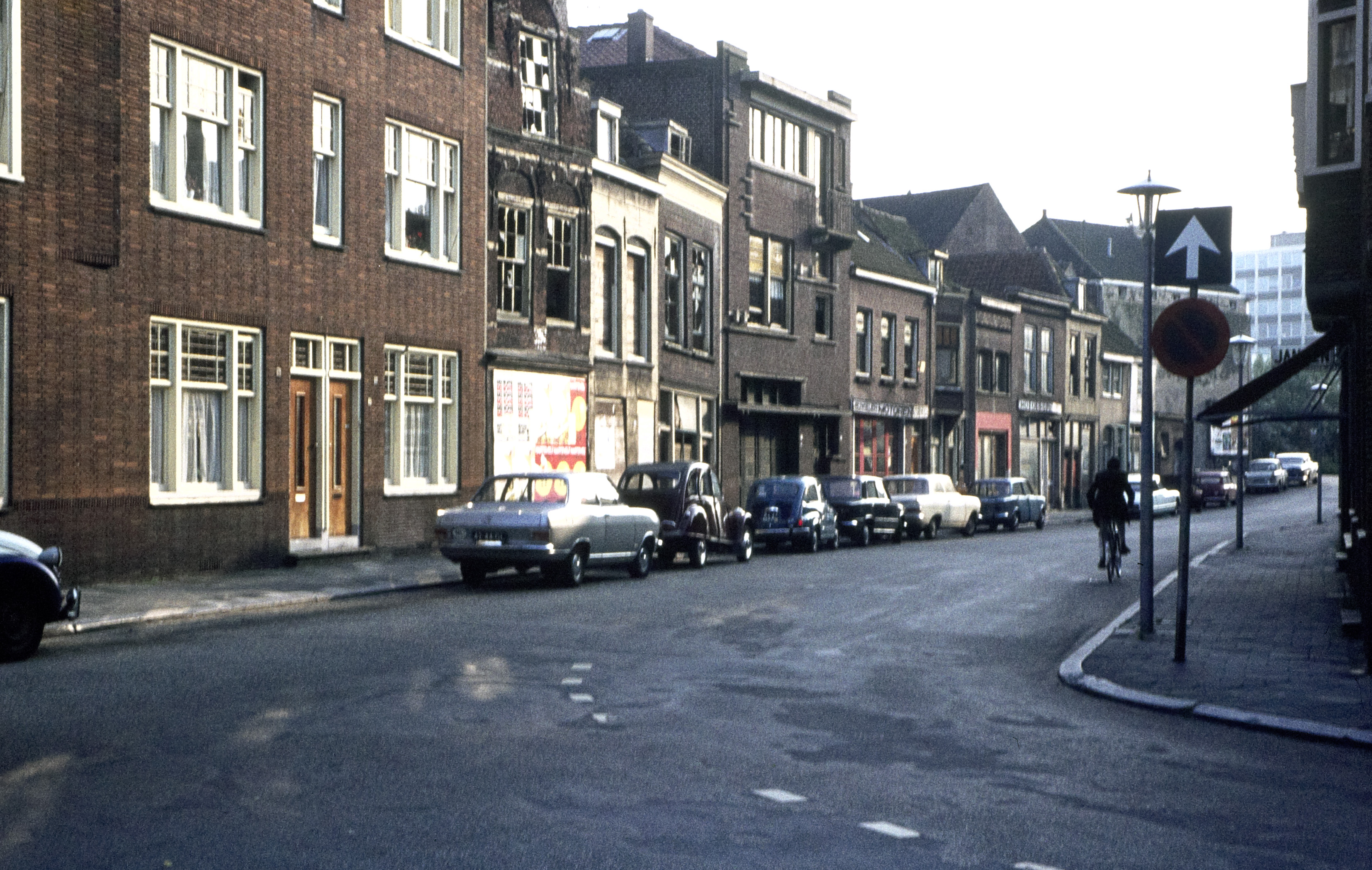 - Elfhuizen vanaf Lombardstraat richting Spuiplein. Op de achtergrond rechts een stukje van het stadskantoor.