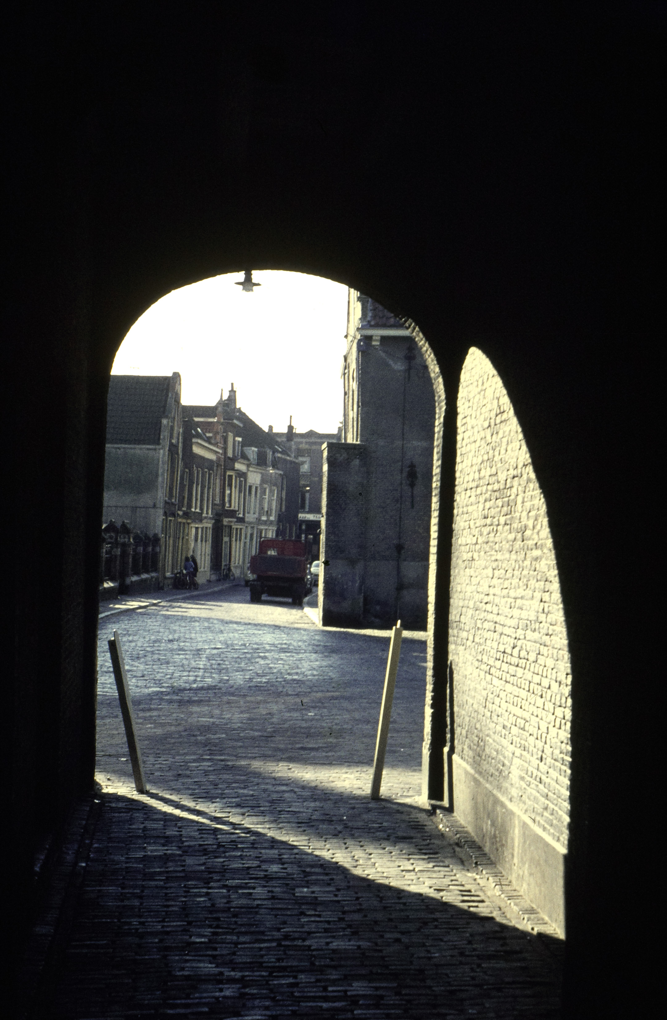 - Poort van het Steegoversloot naar het Hof. Op de achtergrond de Hofstraat.
