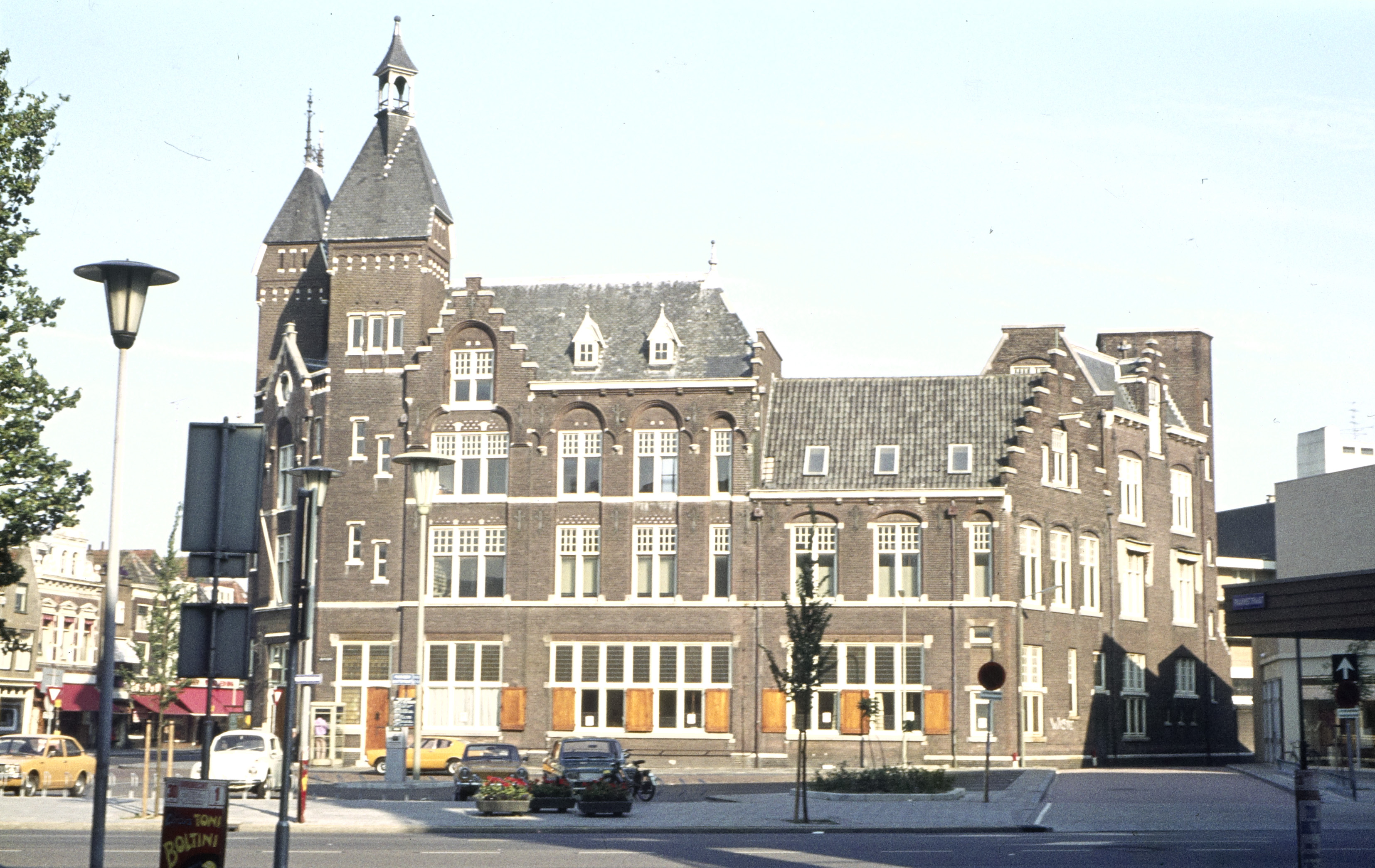 - Het postkantoor op de hoek van het Bagijnhof (links) en het Achterom, gezien vanuit de Raamstraat.