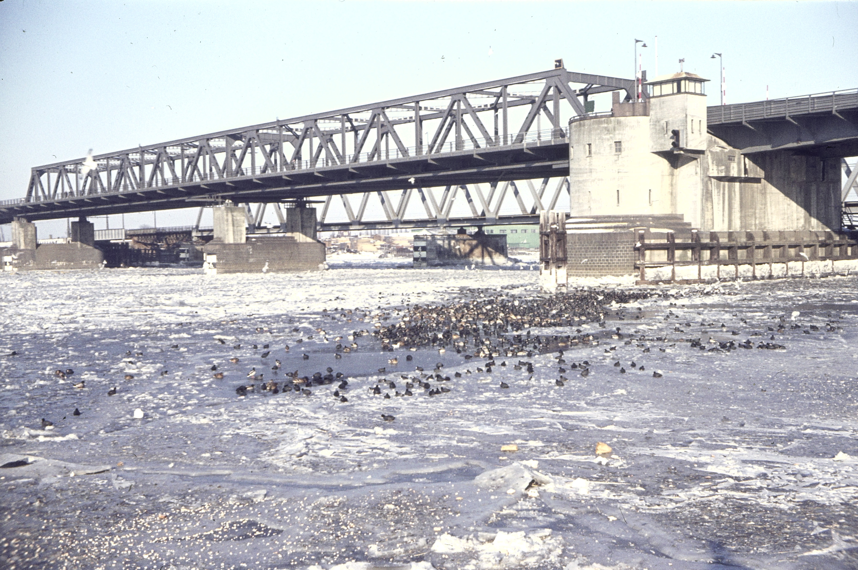 - brugwachtershuisjes ijsgang spoorbruggen verkeersbruggen vogels