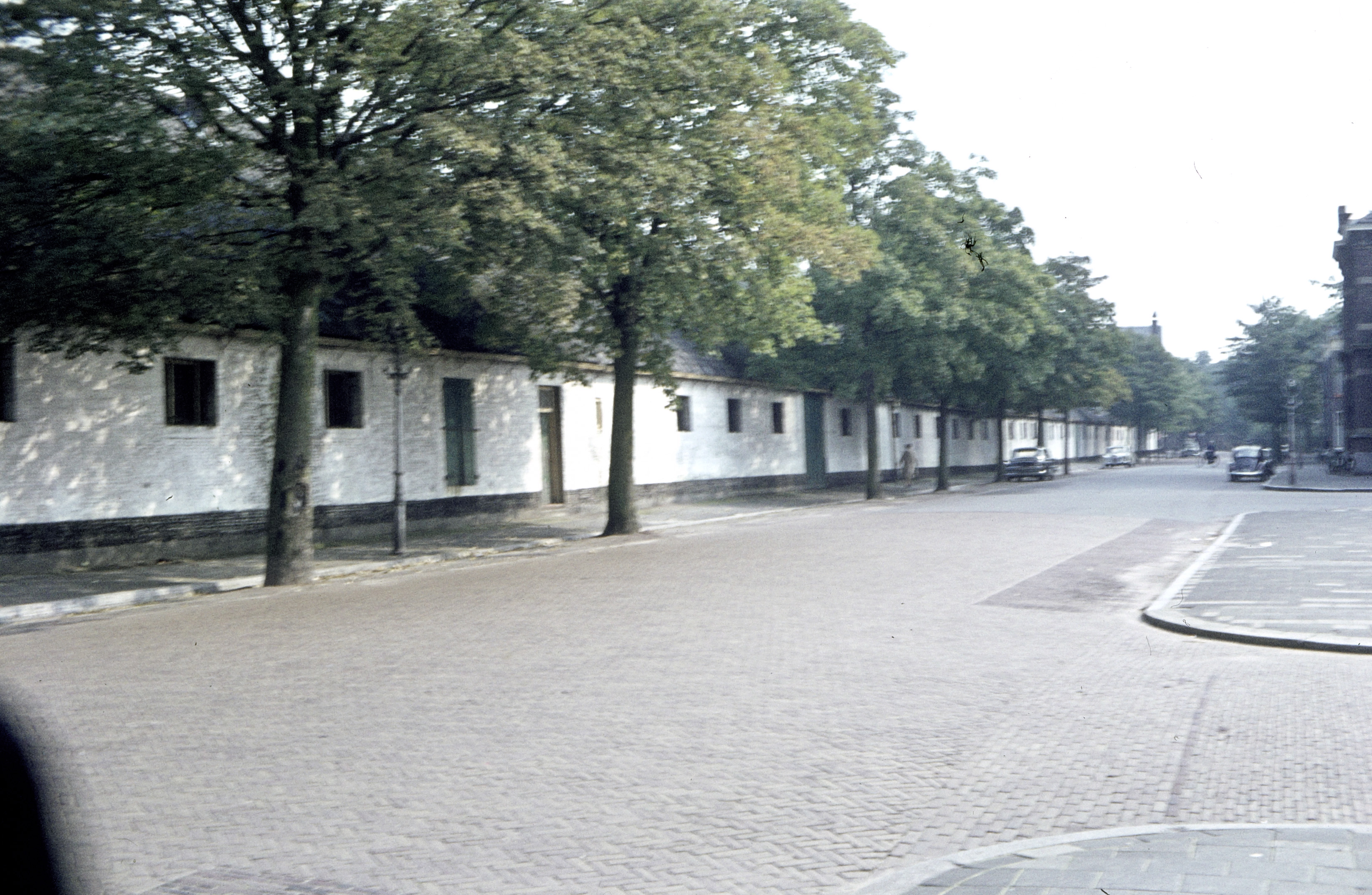 - Rijksmagazijn de Lange Loods in de Cornelis de Wittstraat, gezien in de richting van de Johan de Wittstraat. Rechts de Van Godewijckstraat en een klein stukje van het gymnasium.