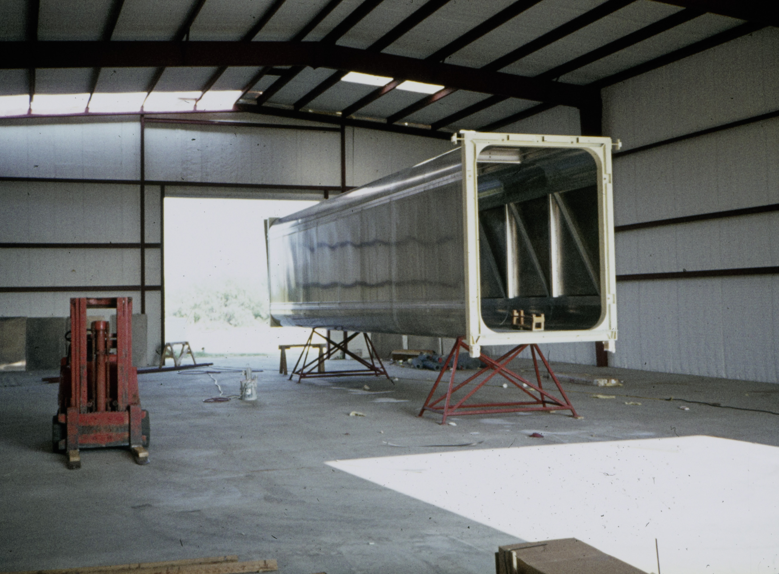 Fabriekshal van Grumman Avio Systems Corporation, vervaardiger van passagiersbruggen op vliegvelden.