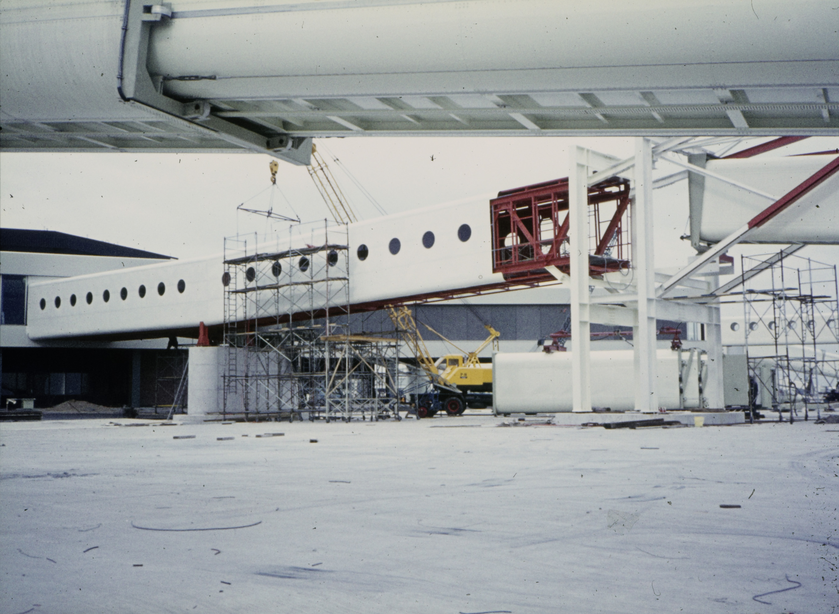- Bouw van een passagiersbrug van Grumman Avio Systems Corporation op een vliegveld in de VS.
