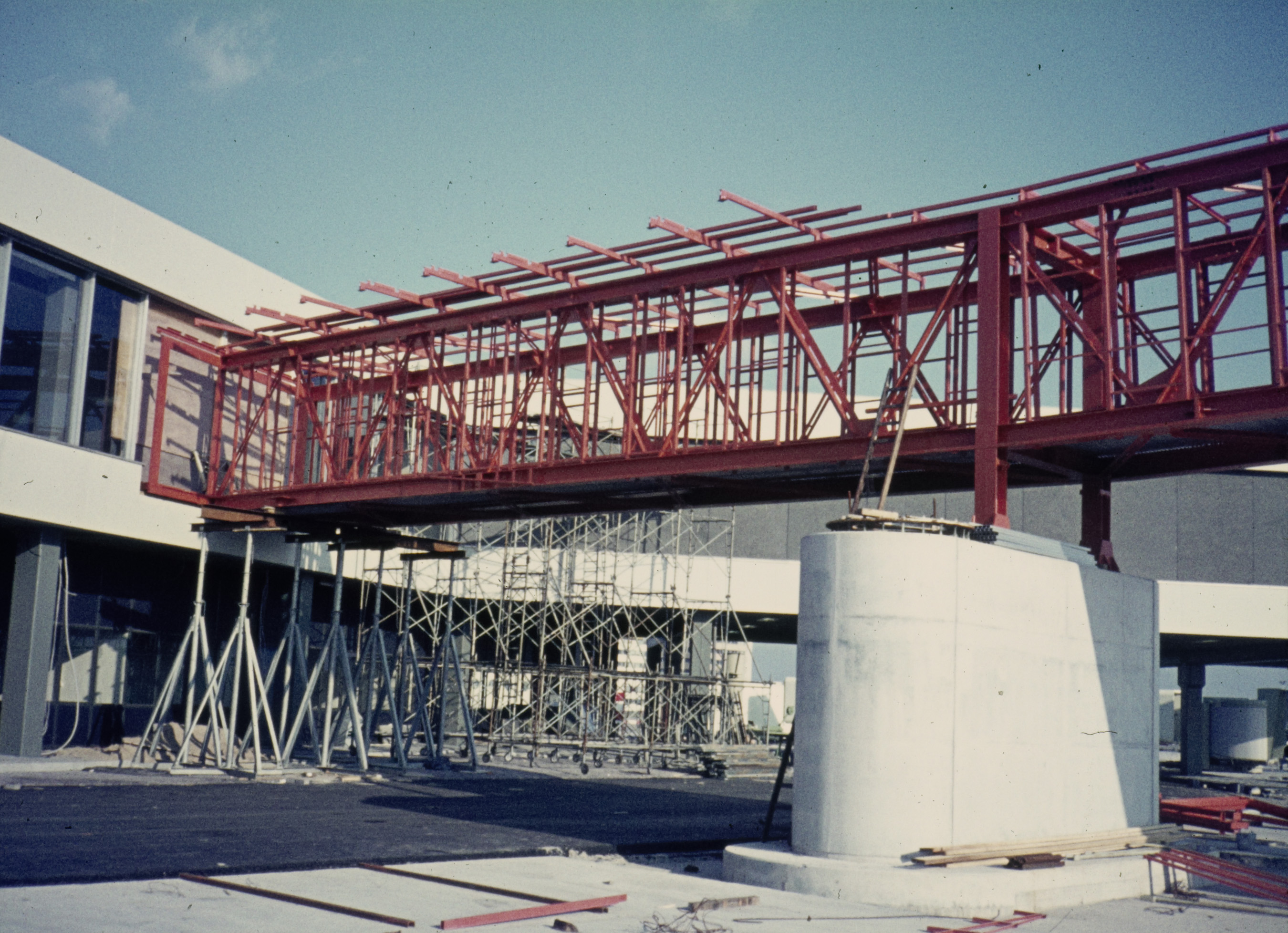 - Bouw van een passagiersbrug van Grumman Avio Systems Corporation op een vliegveld in de VS.
