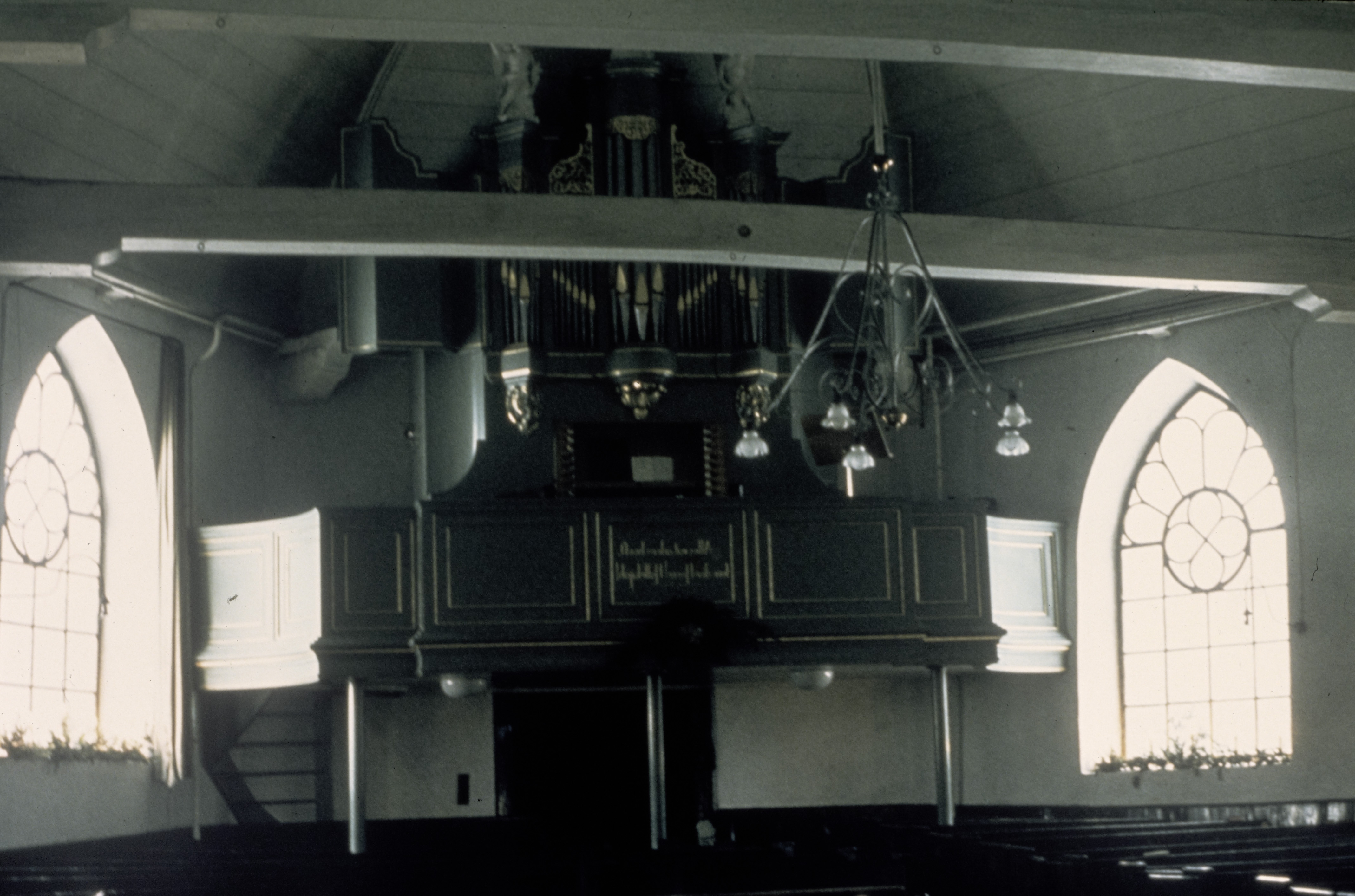 Interieur van de oude Hervormde Kerk aan de Dubbelsteynlaan West in Dubeldam.