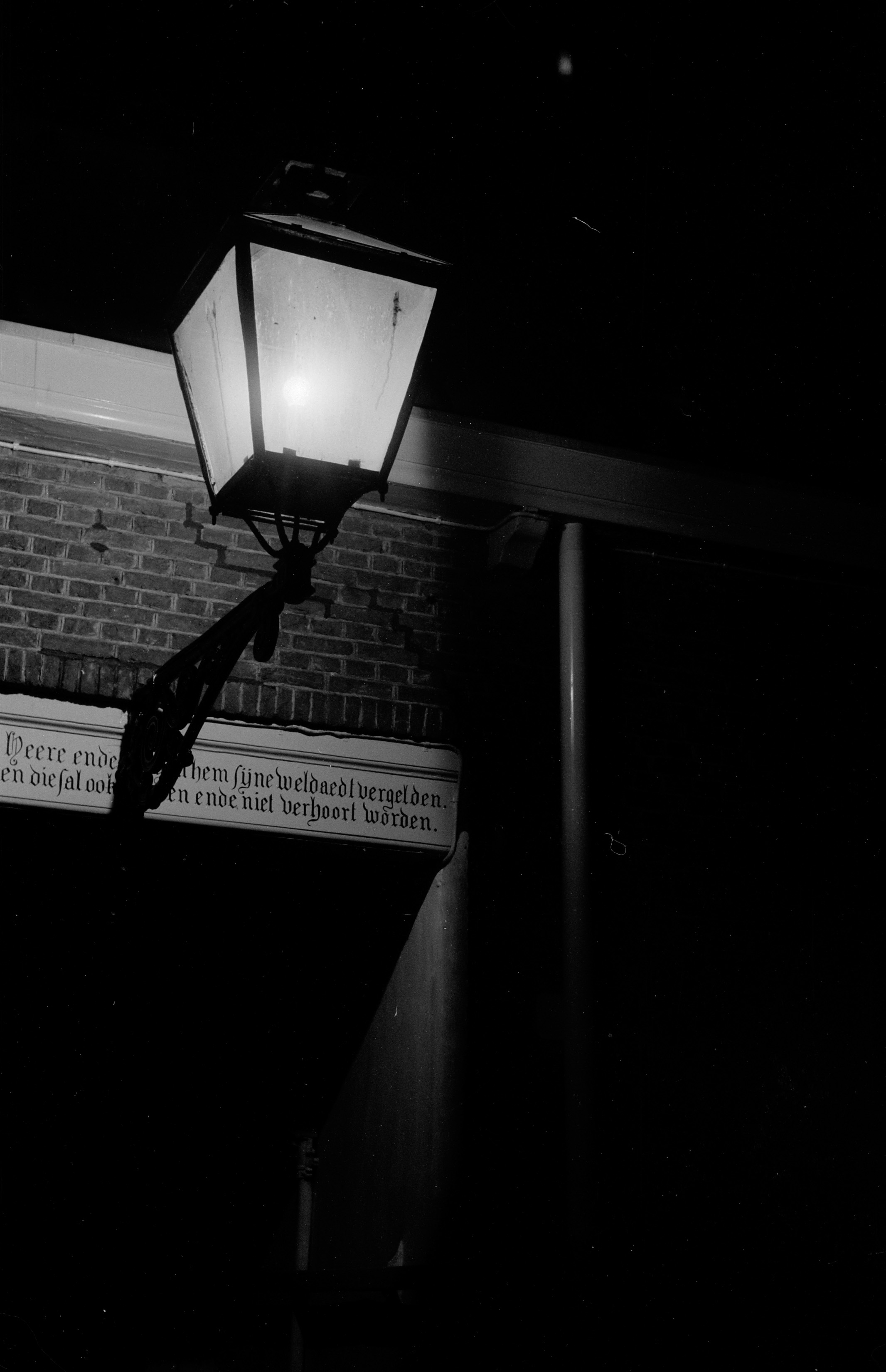 - Nachtopname van de lantaarn in de Arend Maartenshof.