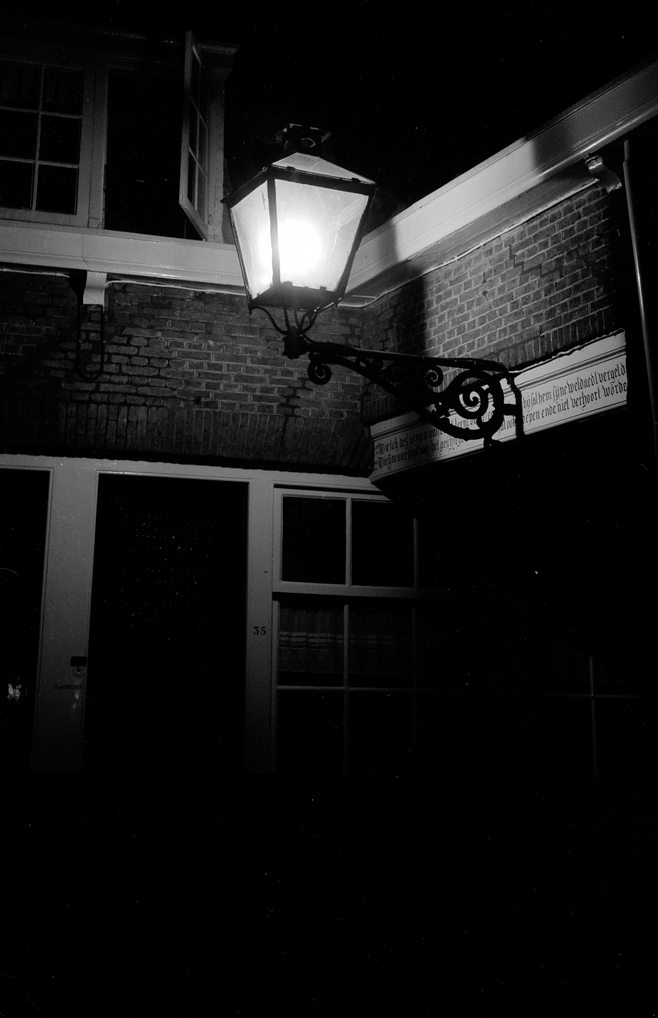 - Nachtopname van de lantaarn in de Arend Maartenshof.