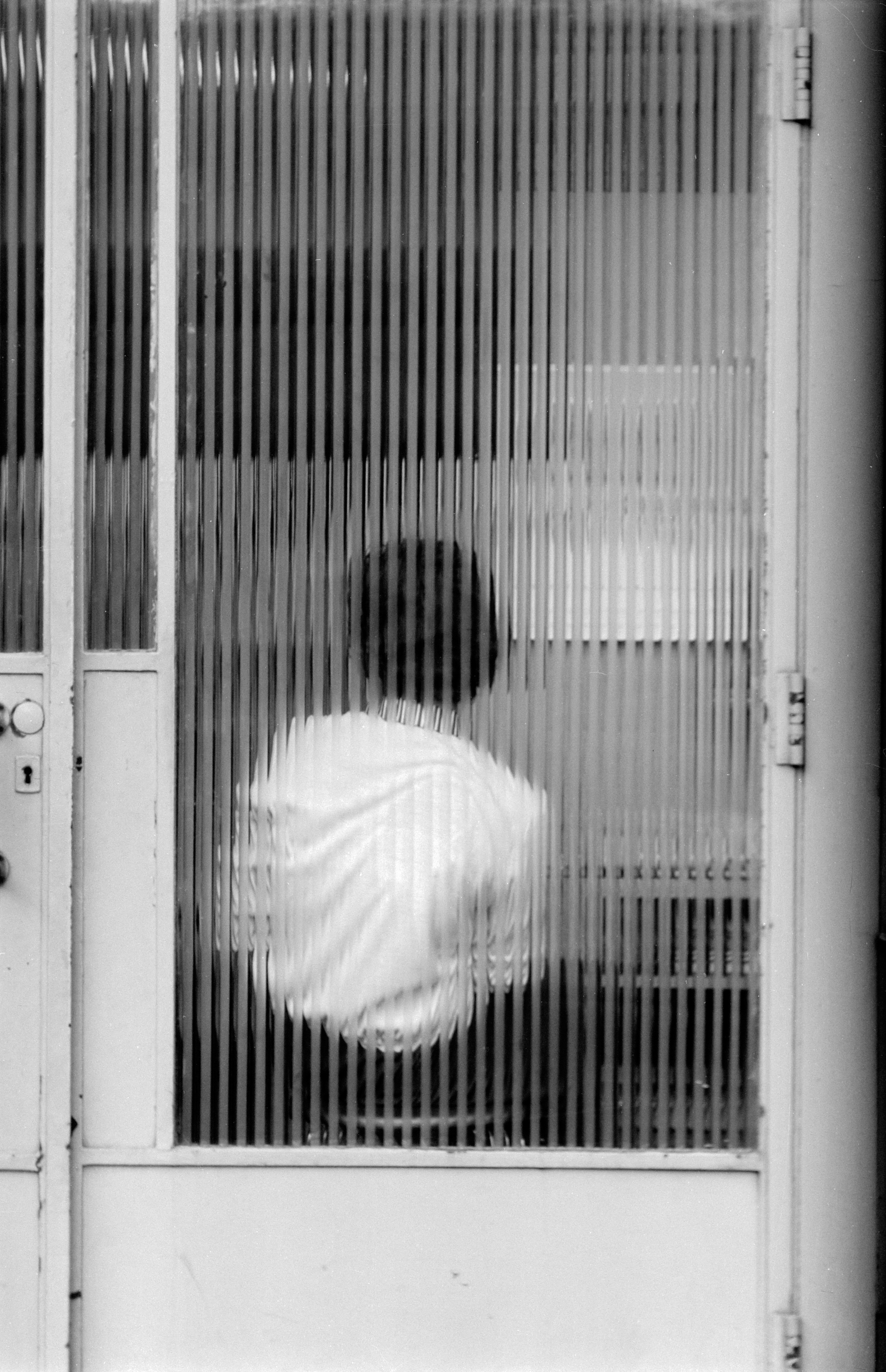 - Dame achter ribbeltjesglas.