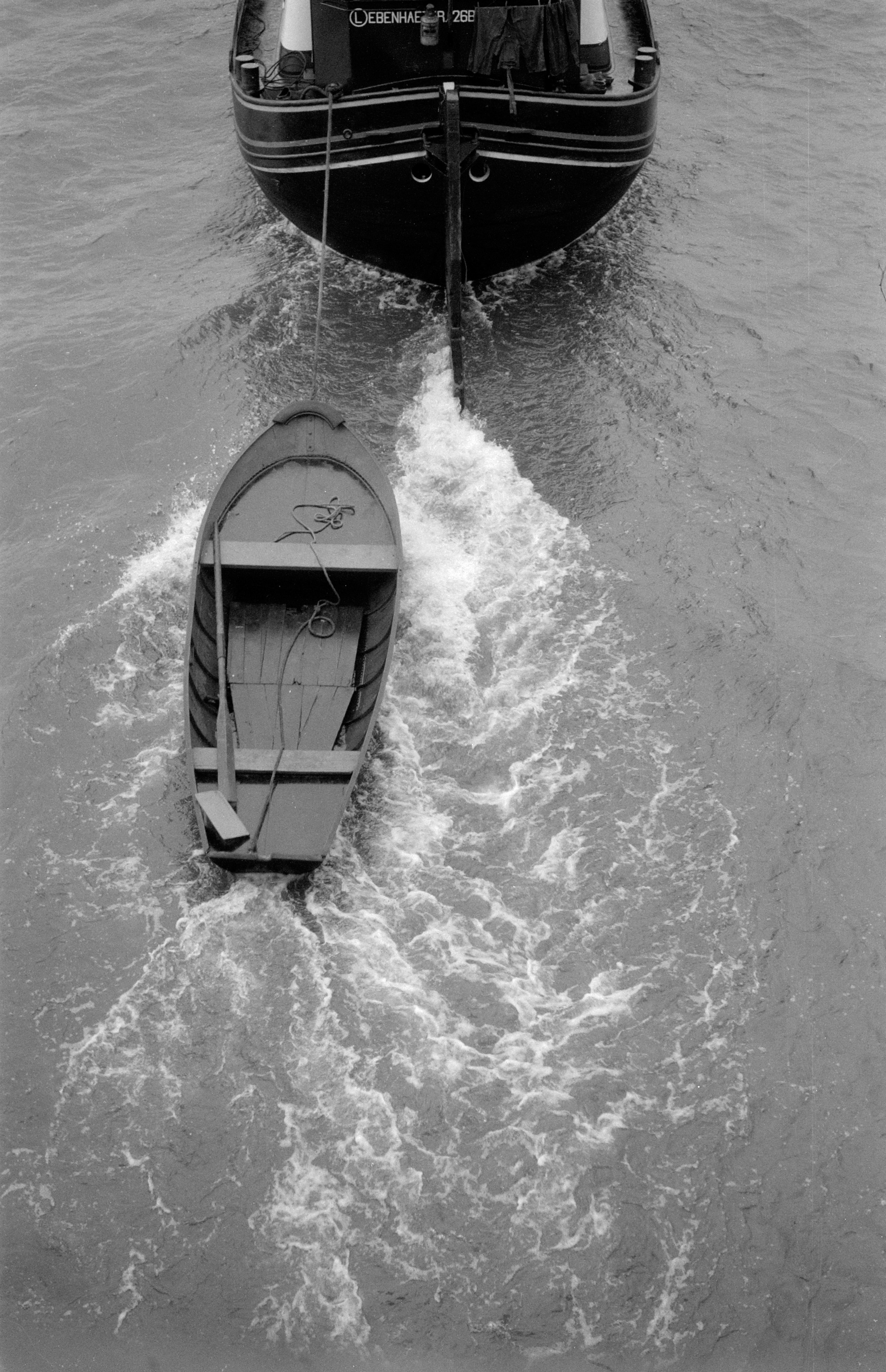 Te zien is de motorklipperaak Ebenhaezer van schipper G. Bouwmeester uit Hoogeveen. Dit schip is in 1915 gebouwd bij Rijnvis in Hoogeveen. De foto is na 1953 gemaakt vanaf de Zwijndrechtse brug. In dat jaar werd dit schip namelijk omgebouwd tot motorschip.