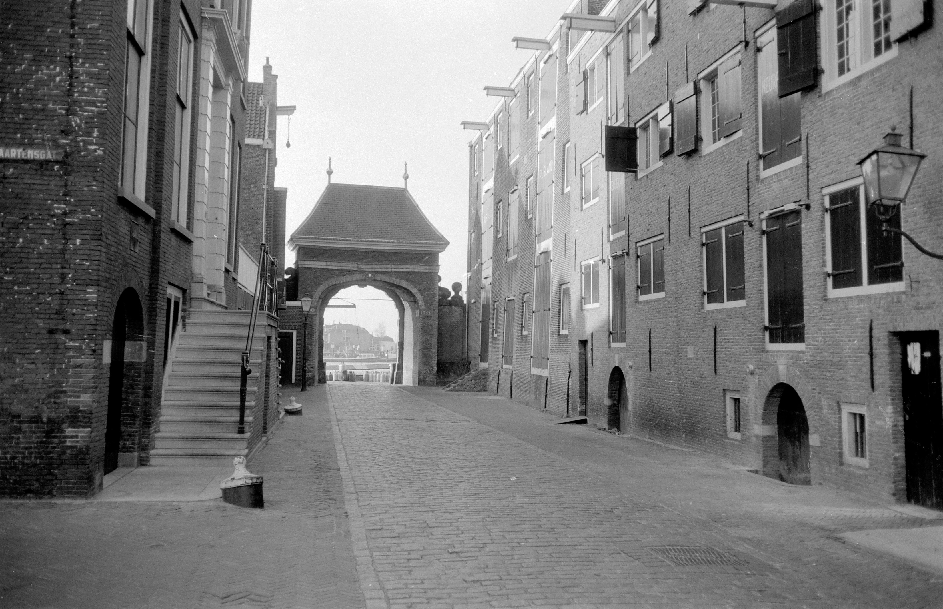 Korte Engelenburgerkade richting Catrijnepoort. Rechts de pakhuizen Engeland en Rusland.
