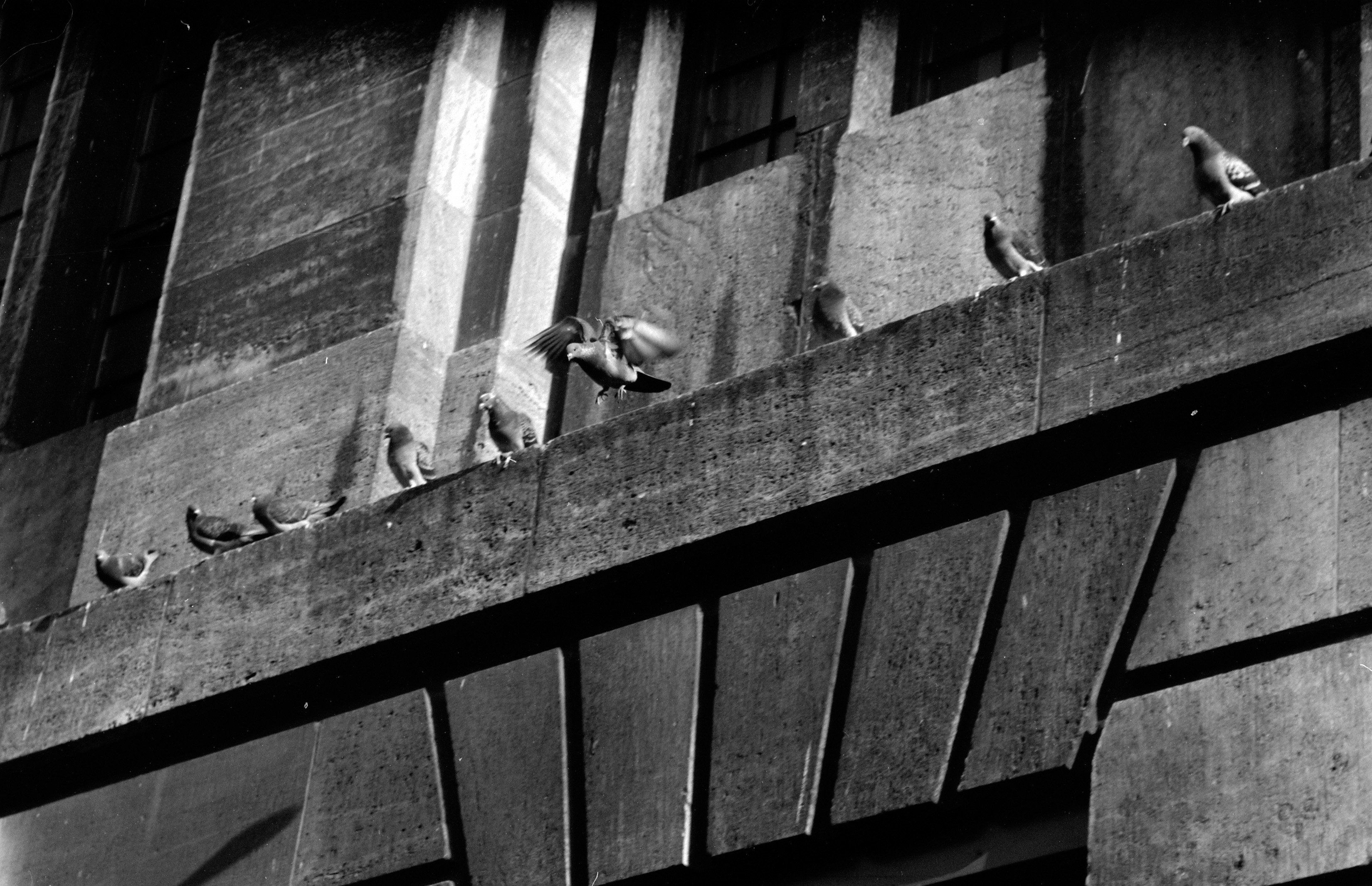 Duiven op de gevel van het hoofdpostkantoor aan de Coolsingel in Rotterdam.