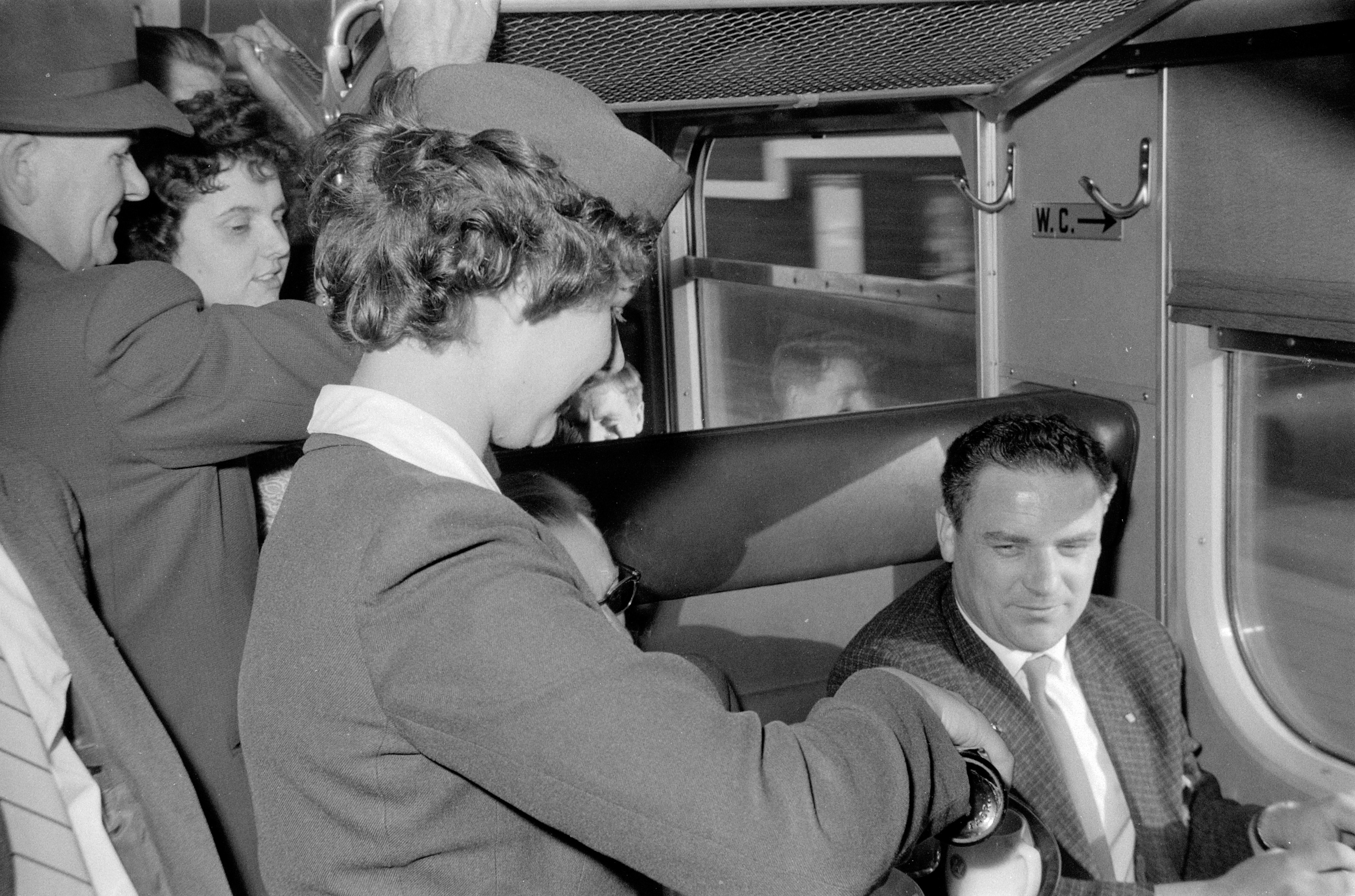 - Treinreizigers in de restauratiecoupé.