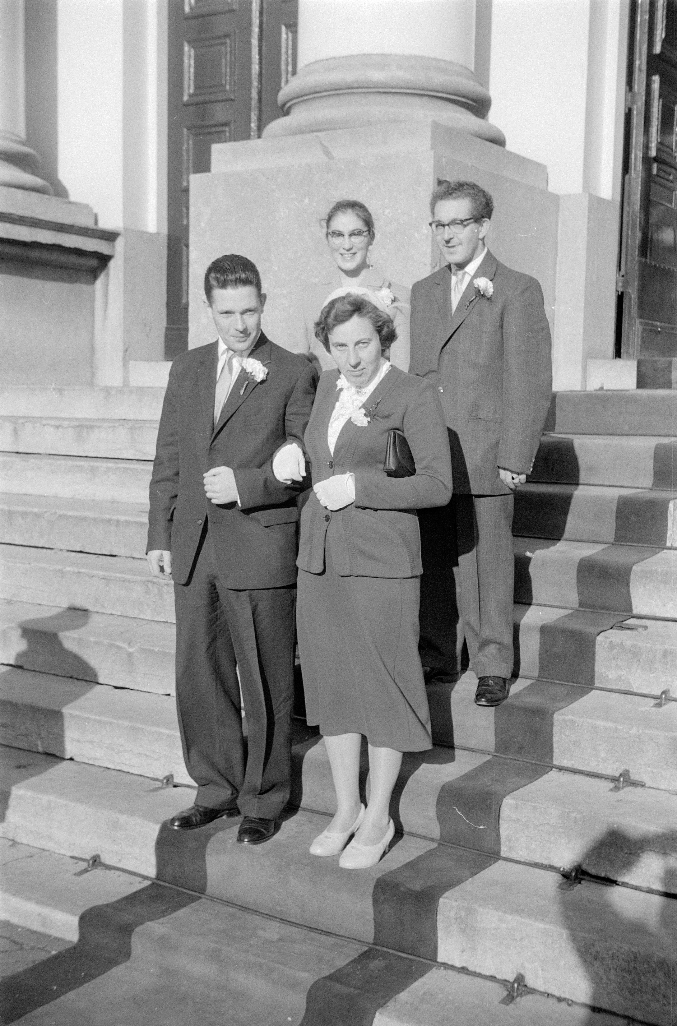 Familie van bruidspaar Beket/Ritskes verlaat het stadhuis.