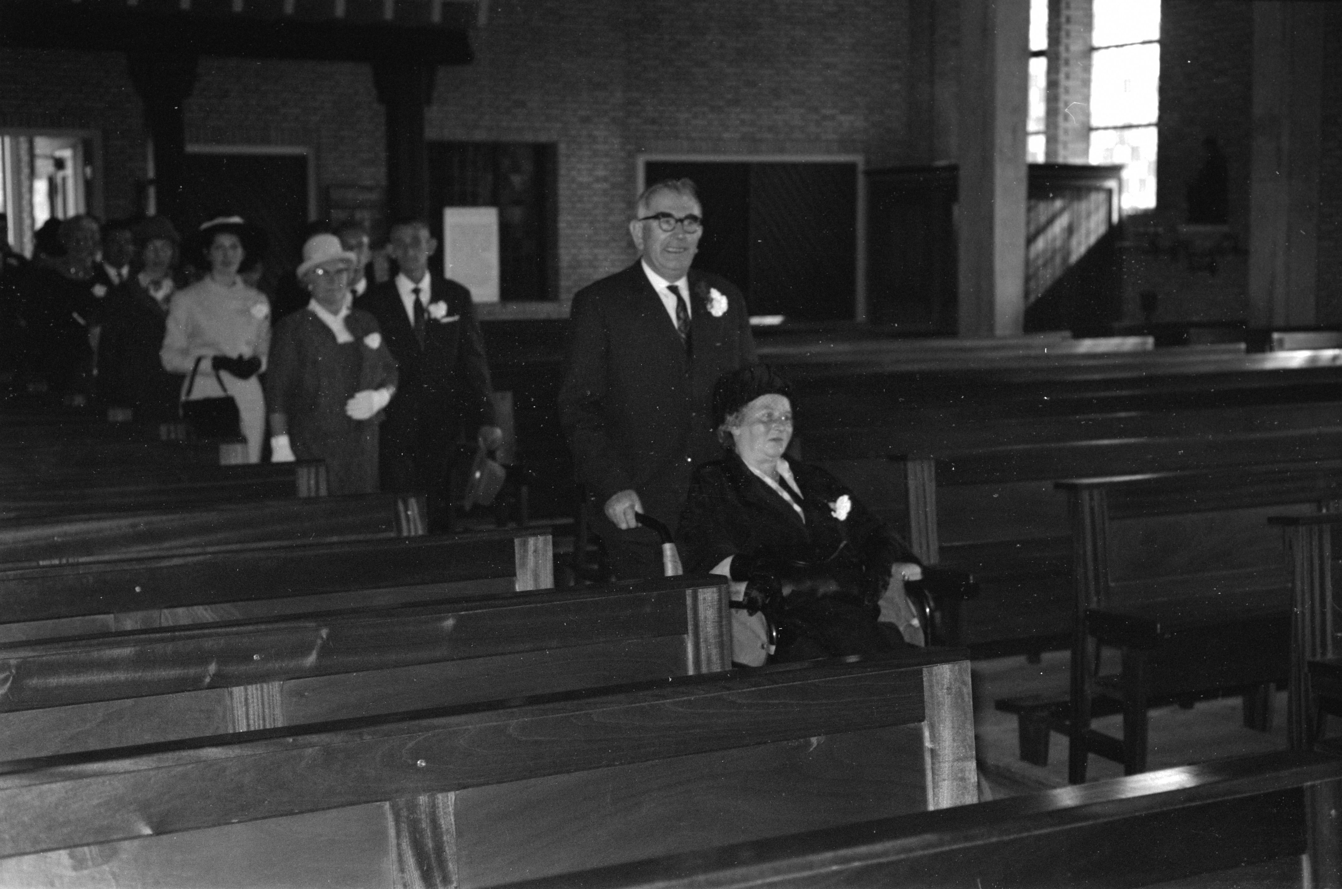 - Familie van een bruidspaar in de Onze Lieve Vrouwe Kerk op de hoek van de Brouwersdijk en de Frans Lebretlaan.