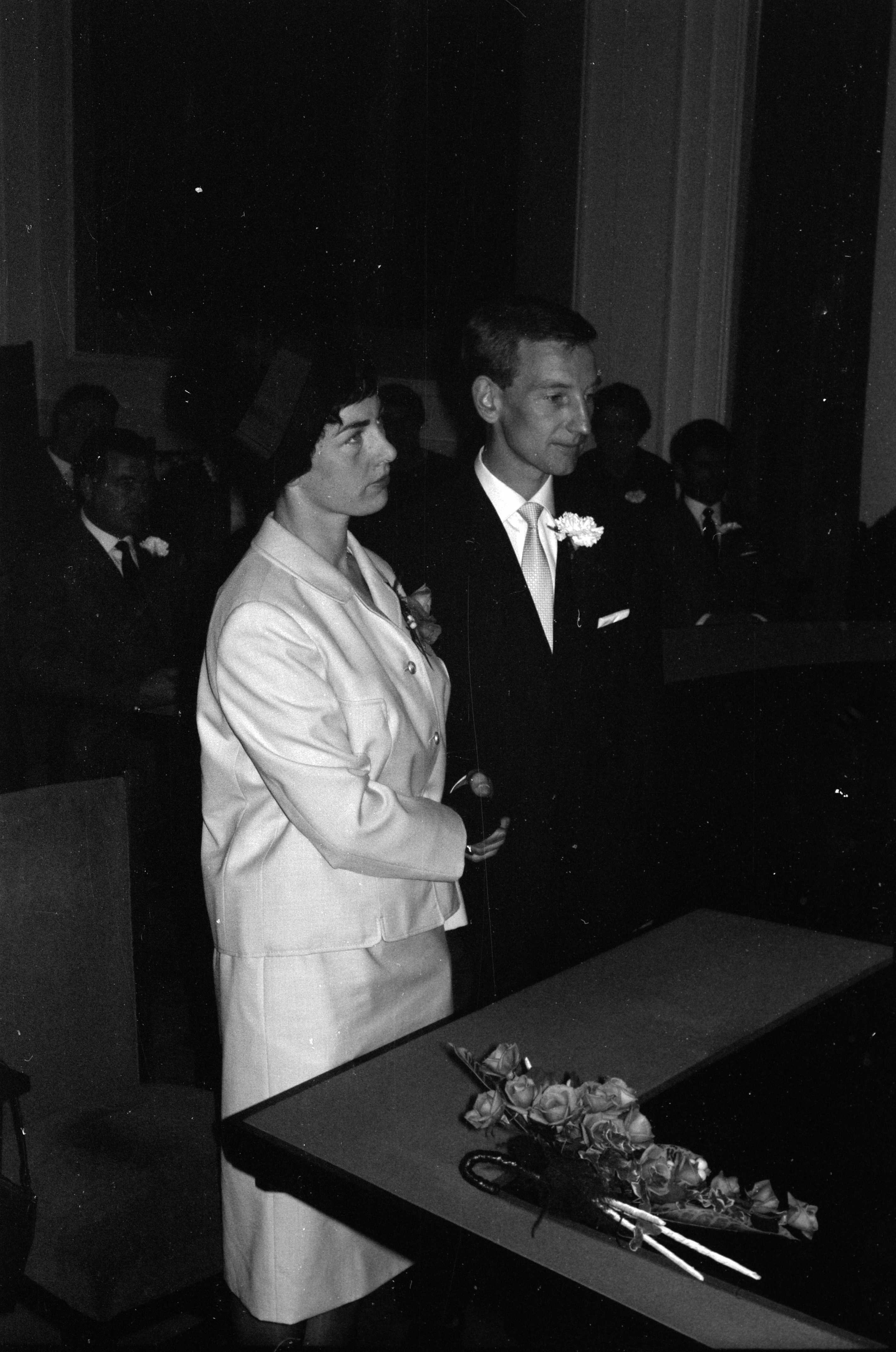 Bruidspaar geeft het jawoord in de trouwzaal van het stadhuis.