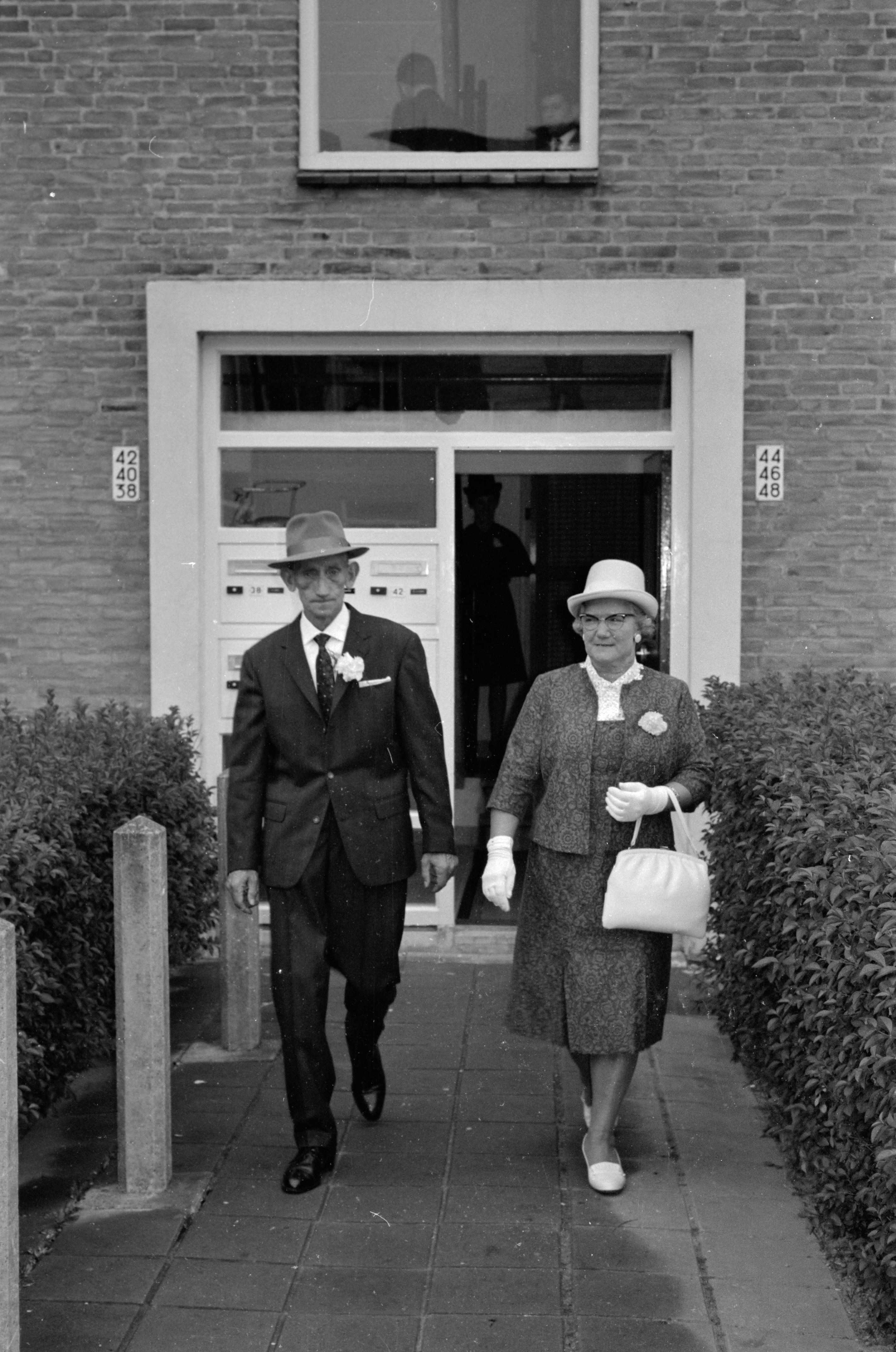 - Familie in de Anna van Burenstraat op weg naar trouwerij.