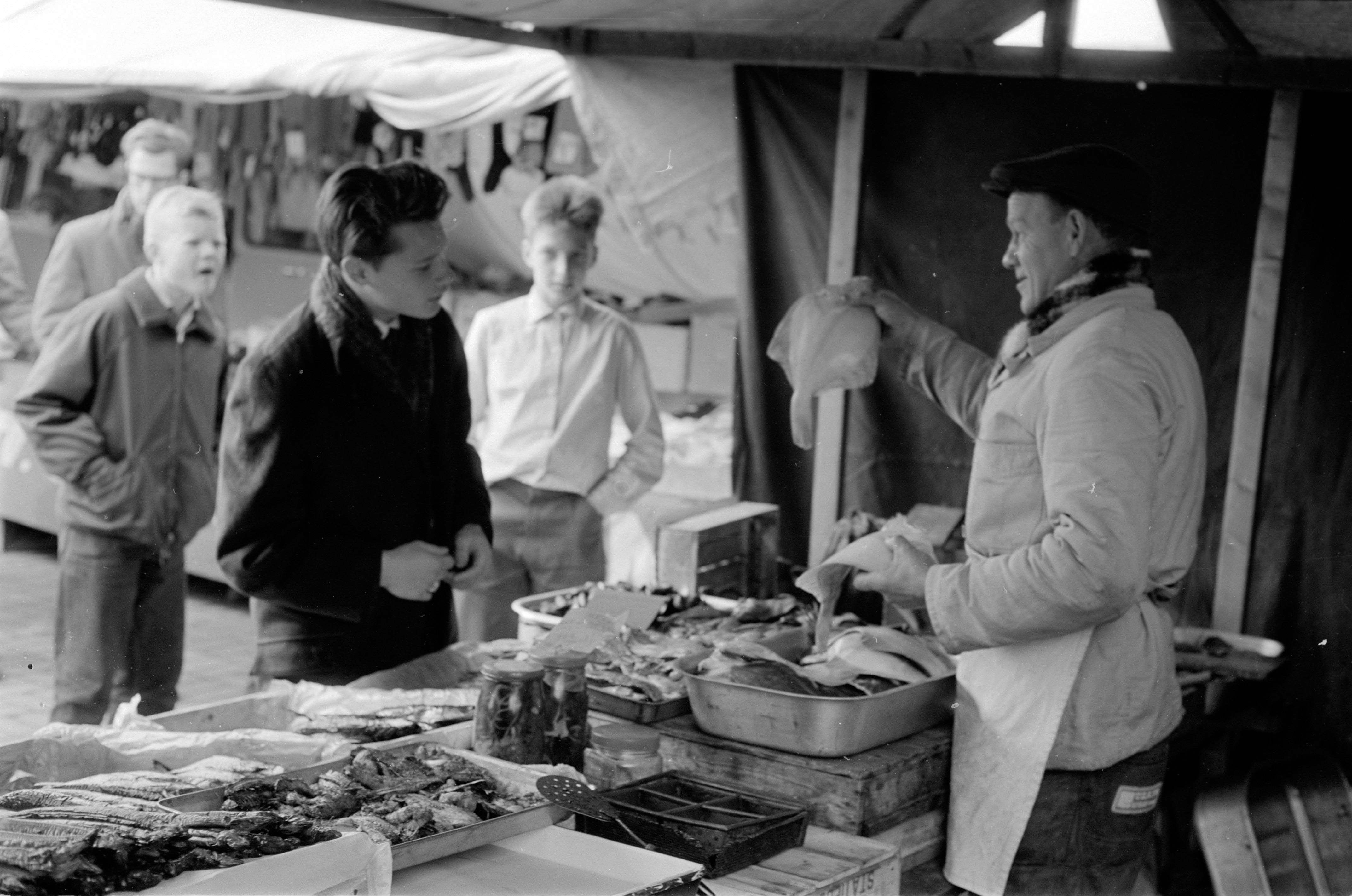 - Jeugdige klanten bij de viskraam.