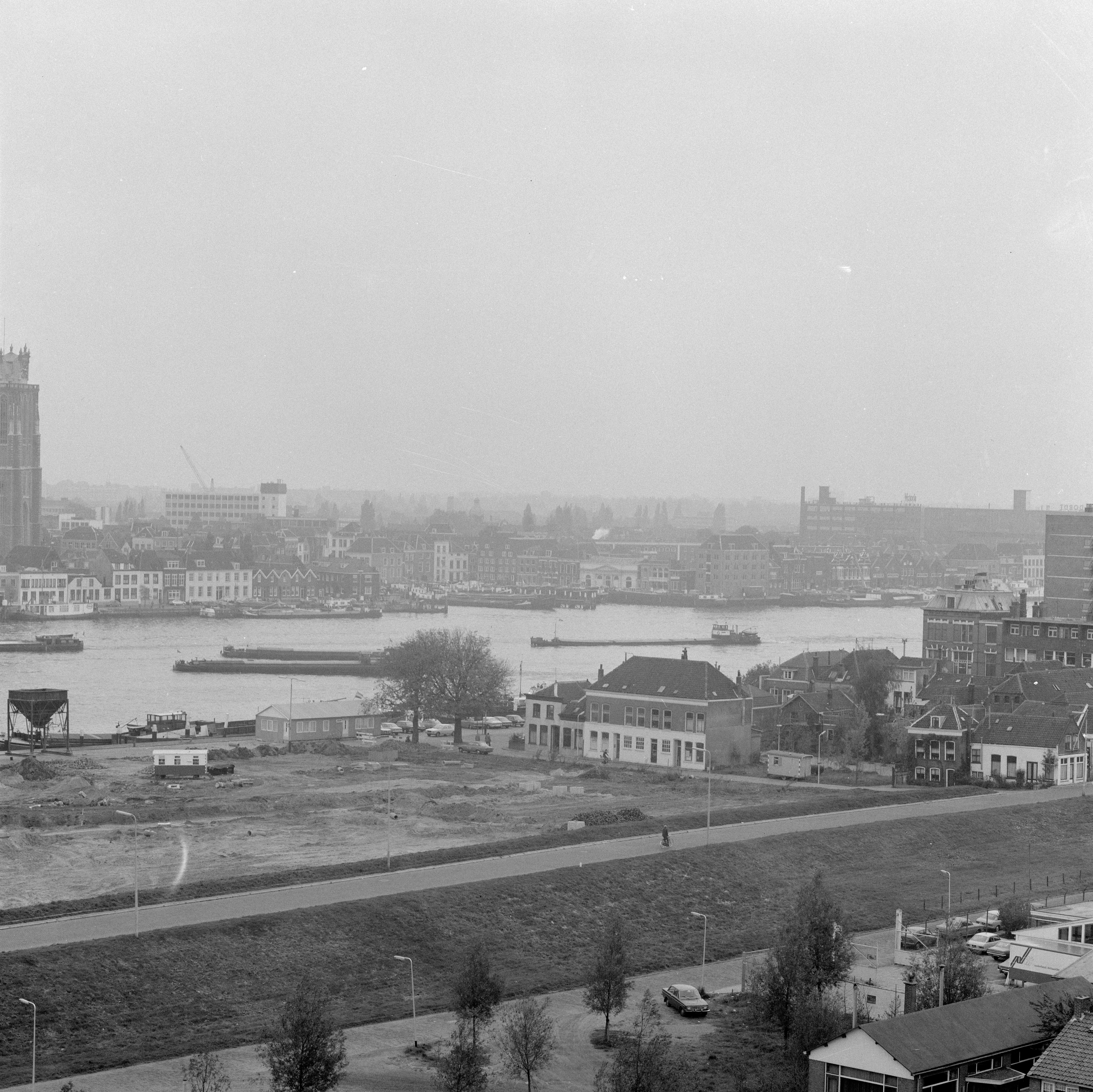 - Panorama vanuit Zwijndrecht over de Oude Maas naar Dordrecht. Op de voorgrond de Ringdijk. Op de Dordtse oever v.l.n.r. de Hooikade met daarachter de Grote Kerk, de Bomkade met de Korenbeurs en pakhuis Vredenburg op de hoek van de Buiten Kalkhaven. Rechts op de achtergrond de Victoria-fabriek.