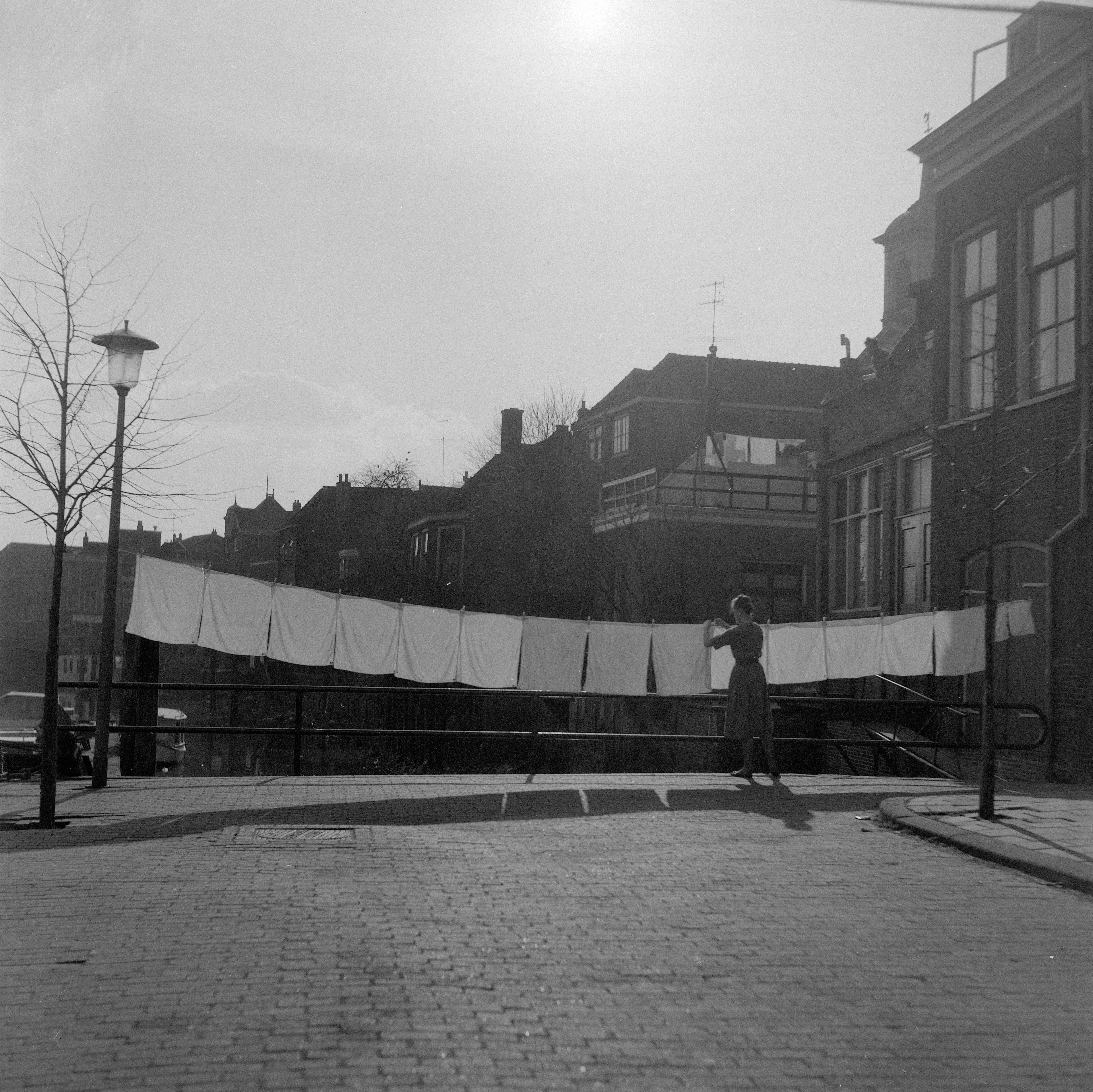 - huisvrouwen lantaarns / straatverlichting wasgoed