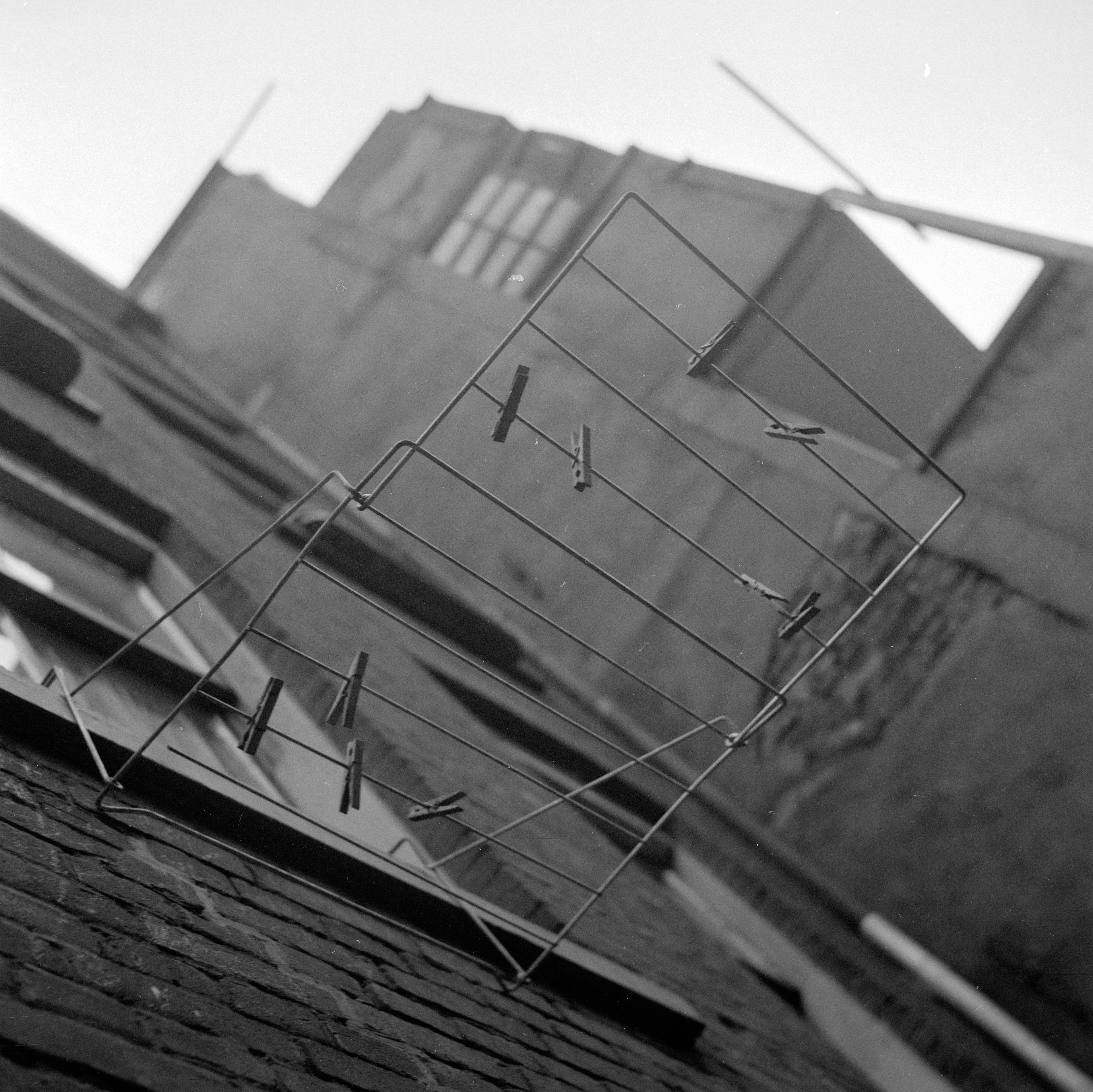 Een droogrek, wasknijpers,... maar geen wasgoed.