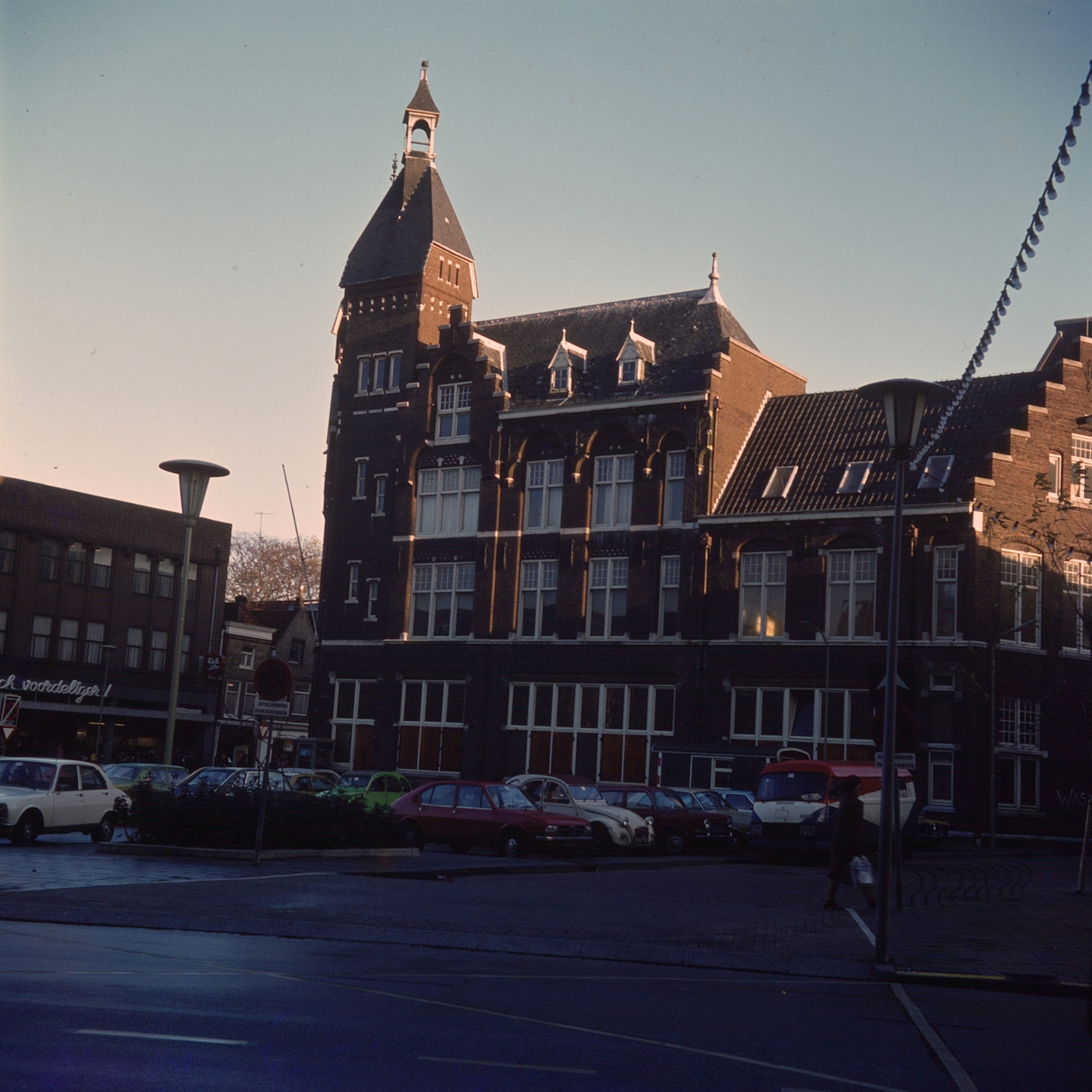 Het postkantoor aan de zijde van het Achterom. Links de vestiging van C&A op het …
