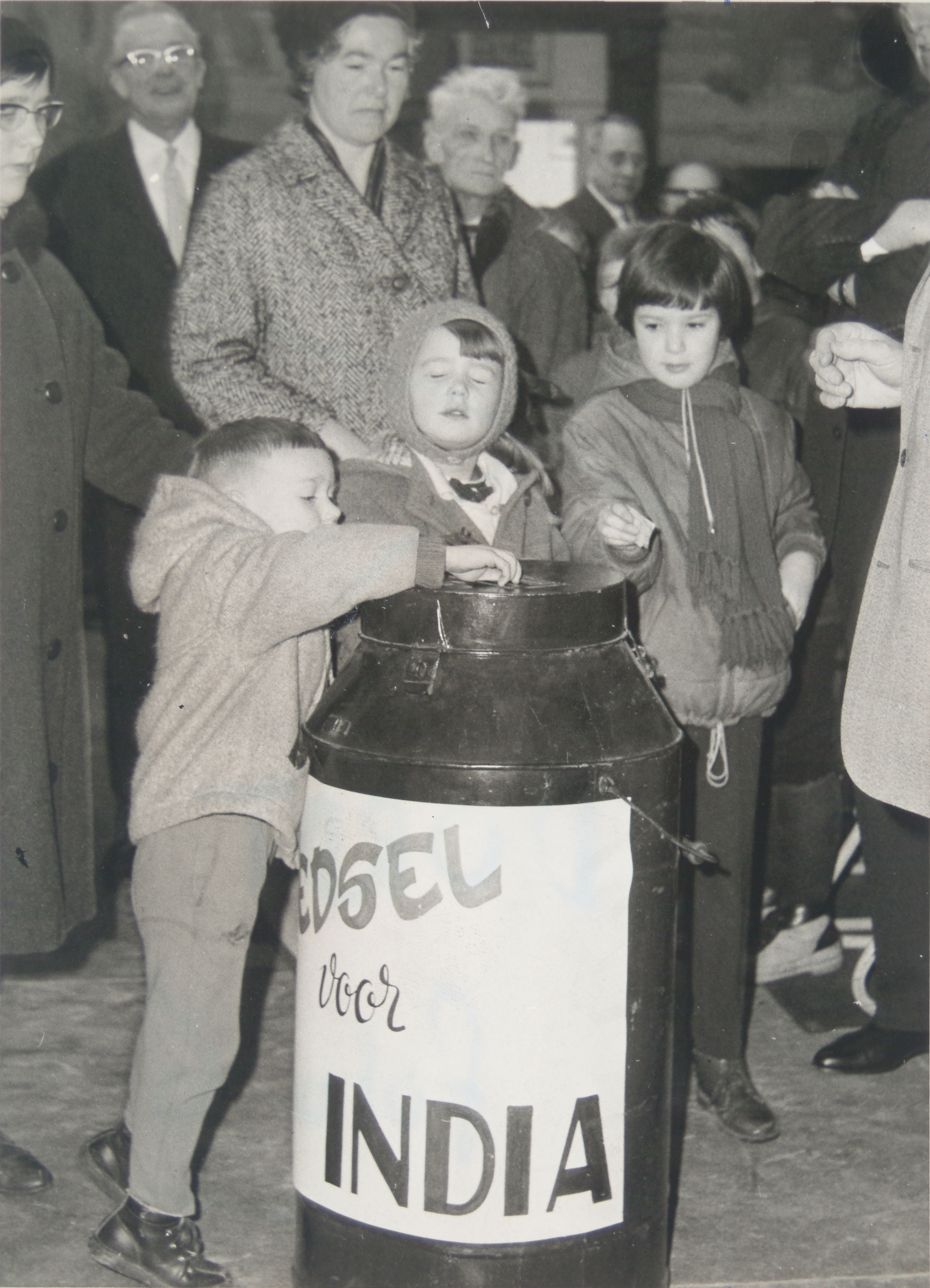 Kinderen dragen bij aan een geldinzameling voor eten voor India