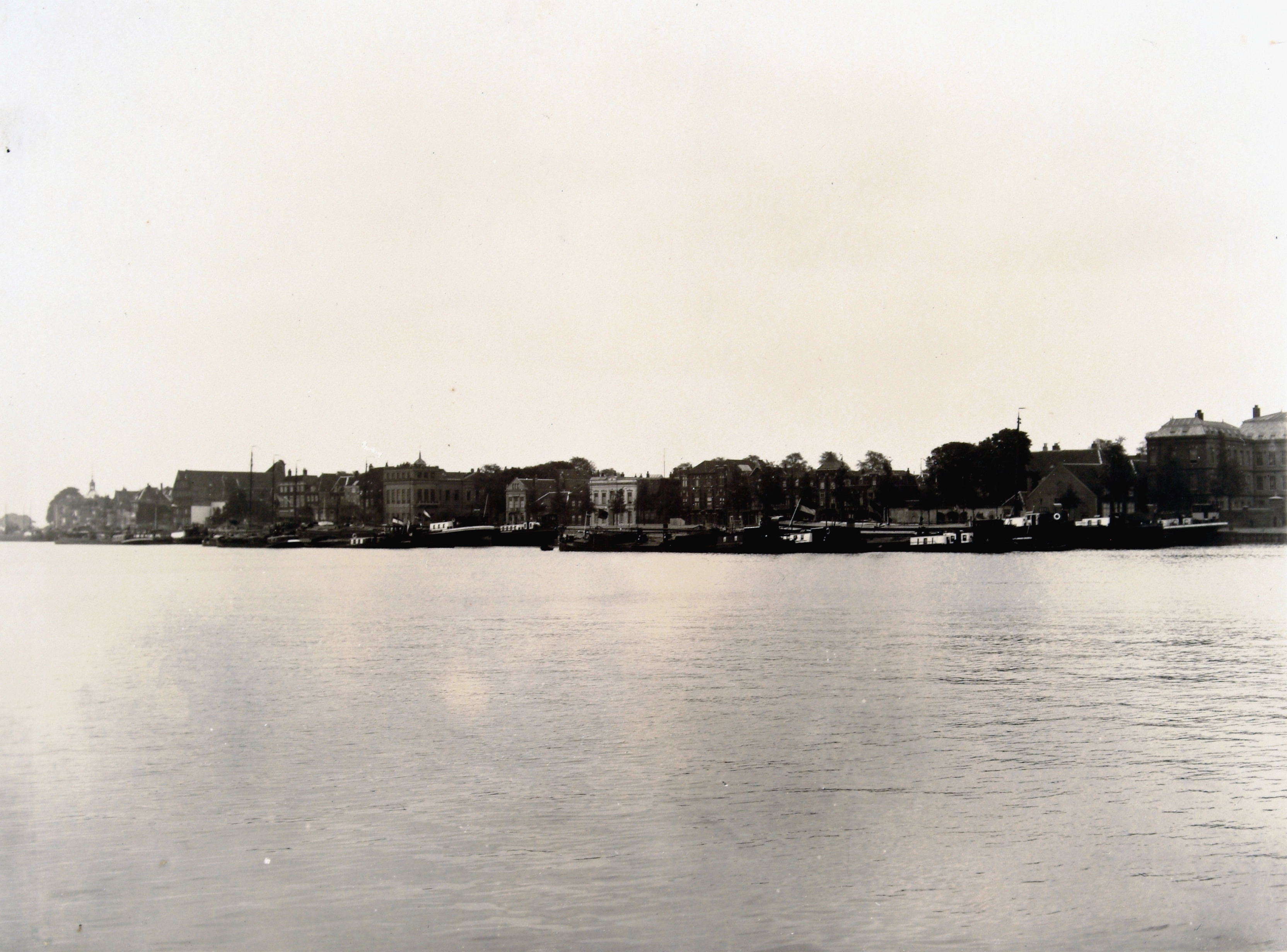 - De Buiten Walevest met de pontonnierskazerne (rechts) en de Wolwevershaven met sociëteit Veersteiger (1/3 van links), gezien vanuit Zwijndrecht, over de Oude Maas.