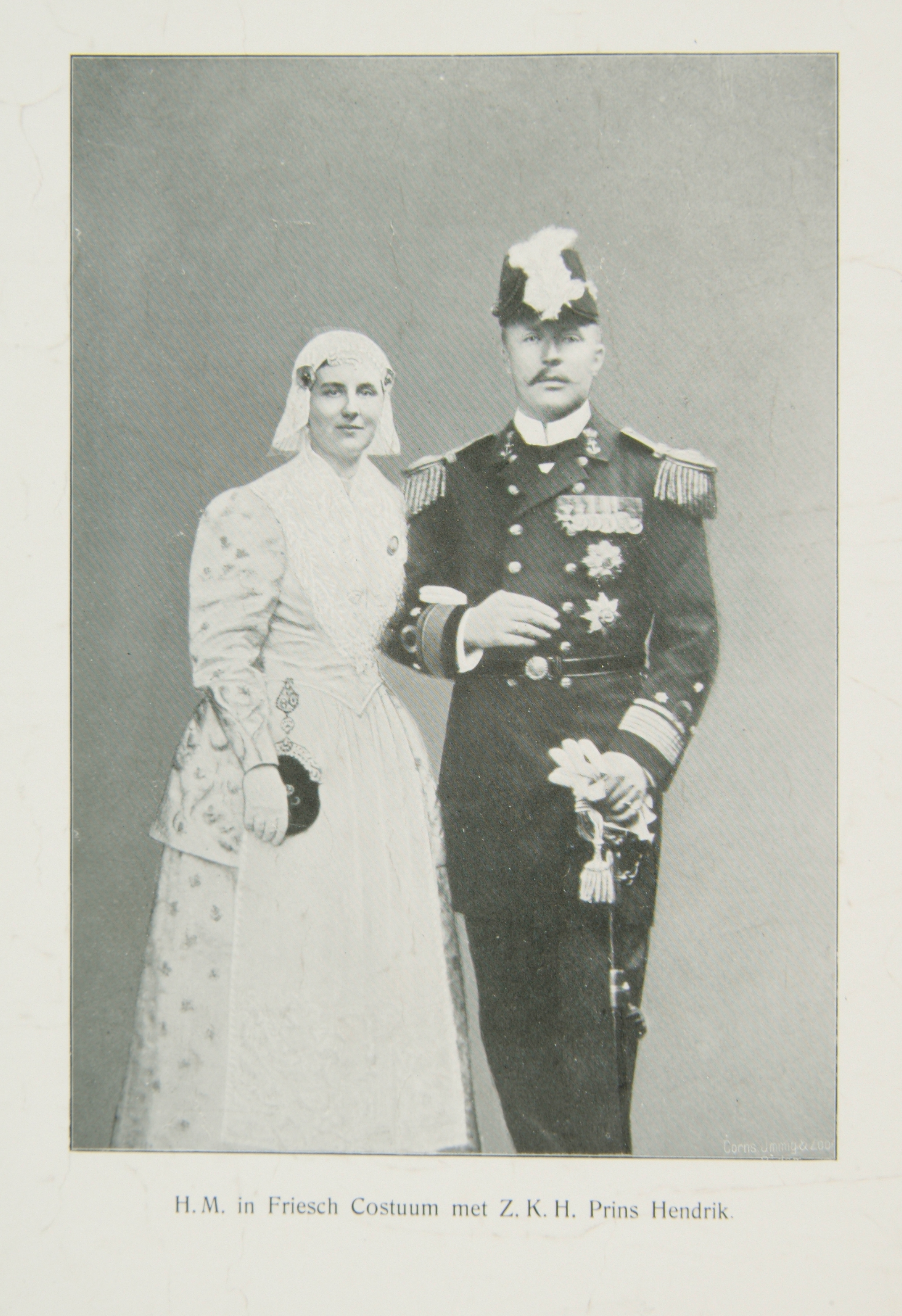 Wilhelmina in Fries kostuum met Hendrik
