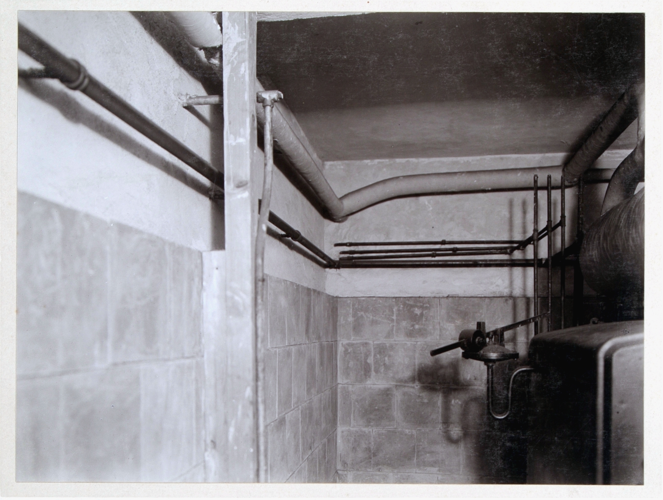 - Een detail van de verwarmingsinstallatie in de kelder van gemeenteschool 10 aan de Vest.