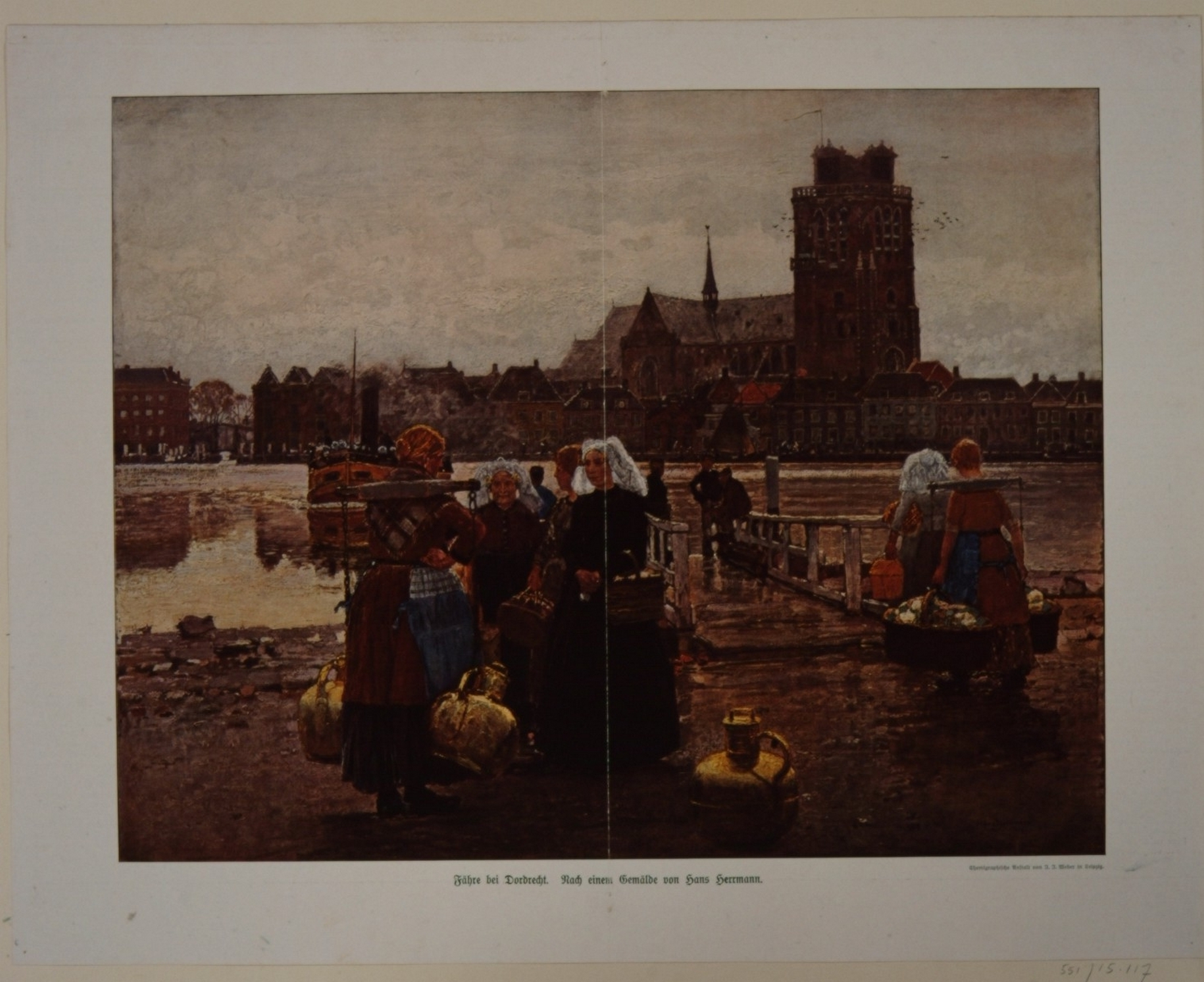 - Titel: Fähre bei Dordrecht, nach einem Gemälde von Hans Herrmann, chromographische Anstalt von J.J. Weber; uit: Illustrierte Zeitung, Leipzig, 8 Jan. 1914; afmetingen: Hg 34, br. 44 c.