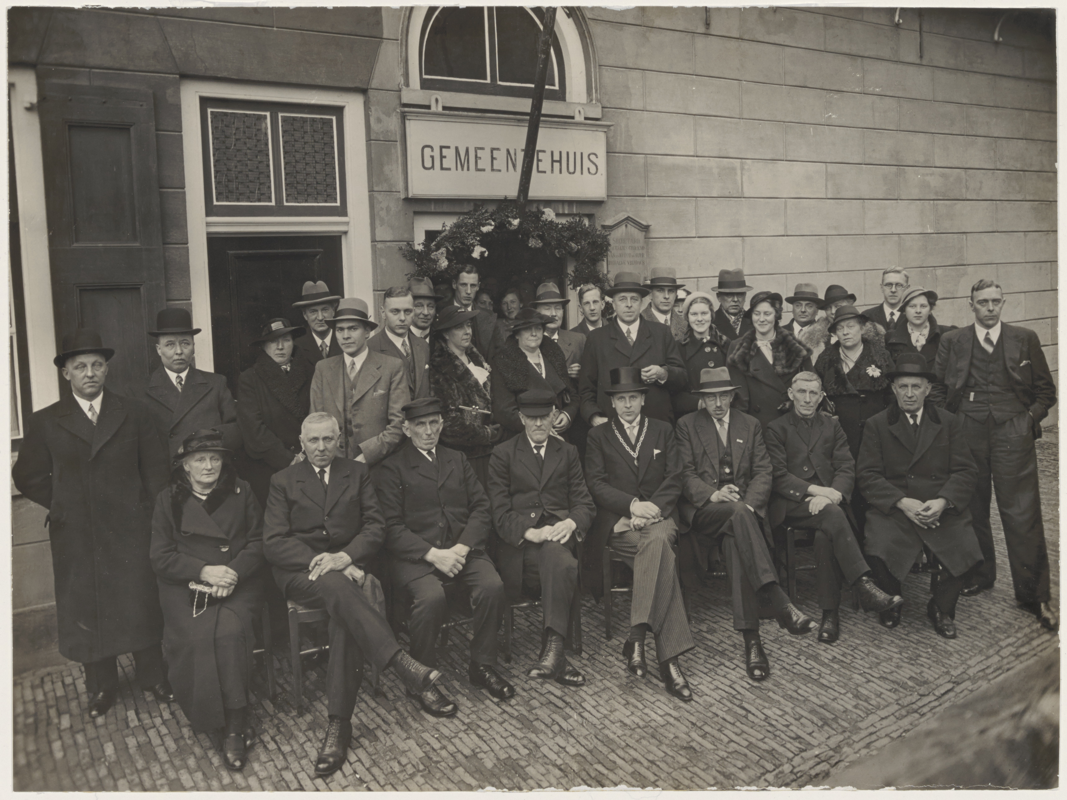 - Installatie van de heer C.G. van Dobben de Bruyn tot burgemeester van Oud-Alblas voor het toenmalige gemeentehuis in de Kerkstraat. Zittend v.l.n.r. mevrouw ??, de heren J.A. Jongeneel Czn, J. den Braanker, J. Jongeneel Rzn, C.G. van Dobben de Bruyn, J.C. de Haan, J. Kortleve en J. Jongeneel Azn. Staande achter de burgemeester diens vader met links zijn moeder en rechts een drietal zusters en helemaal rechts zijn broer Piet. Achter Van Dobben de Bruyn sr. staat een tweede broer die later burgemeester van Neerlangbroek werd.