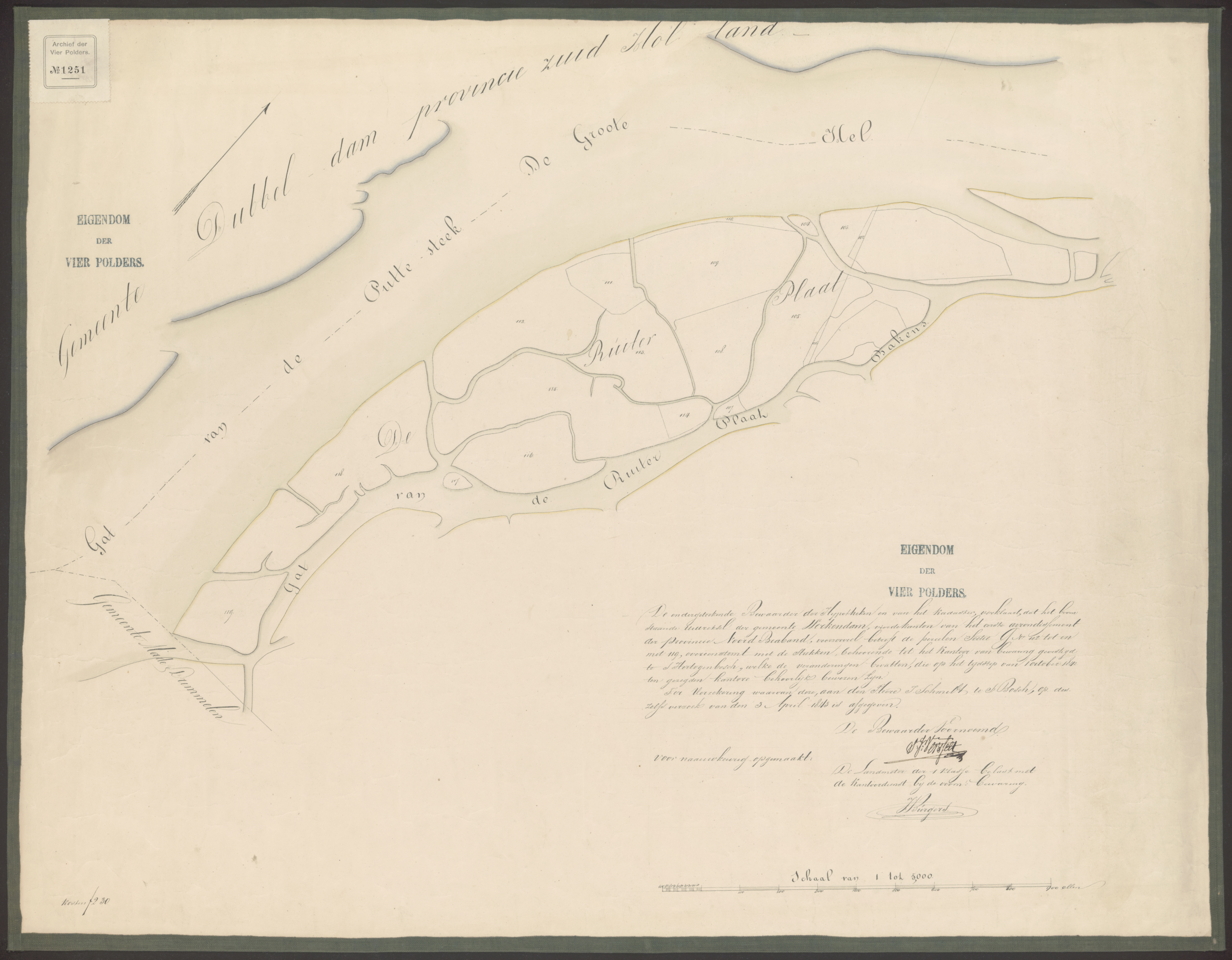 - Uittreksel uit de kadastrale kaart van de gronden en water gelegen op e Ruiterplaat en in het gat van de Puttesteek en de Groote Hel, 1843