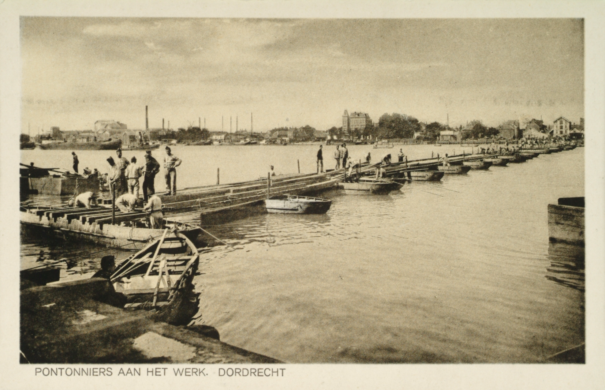 Pontonniers aan het werk op de Oude Maas rond 1911.