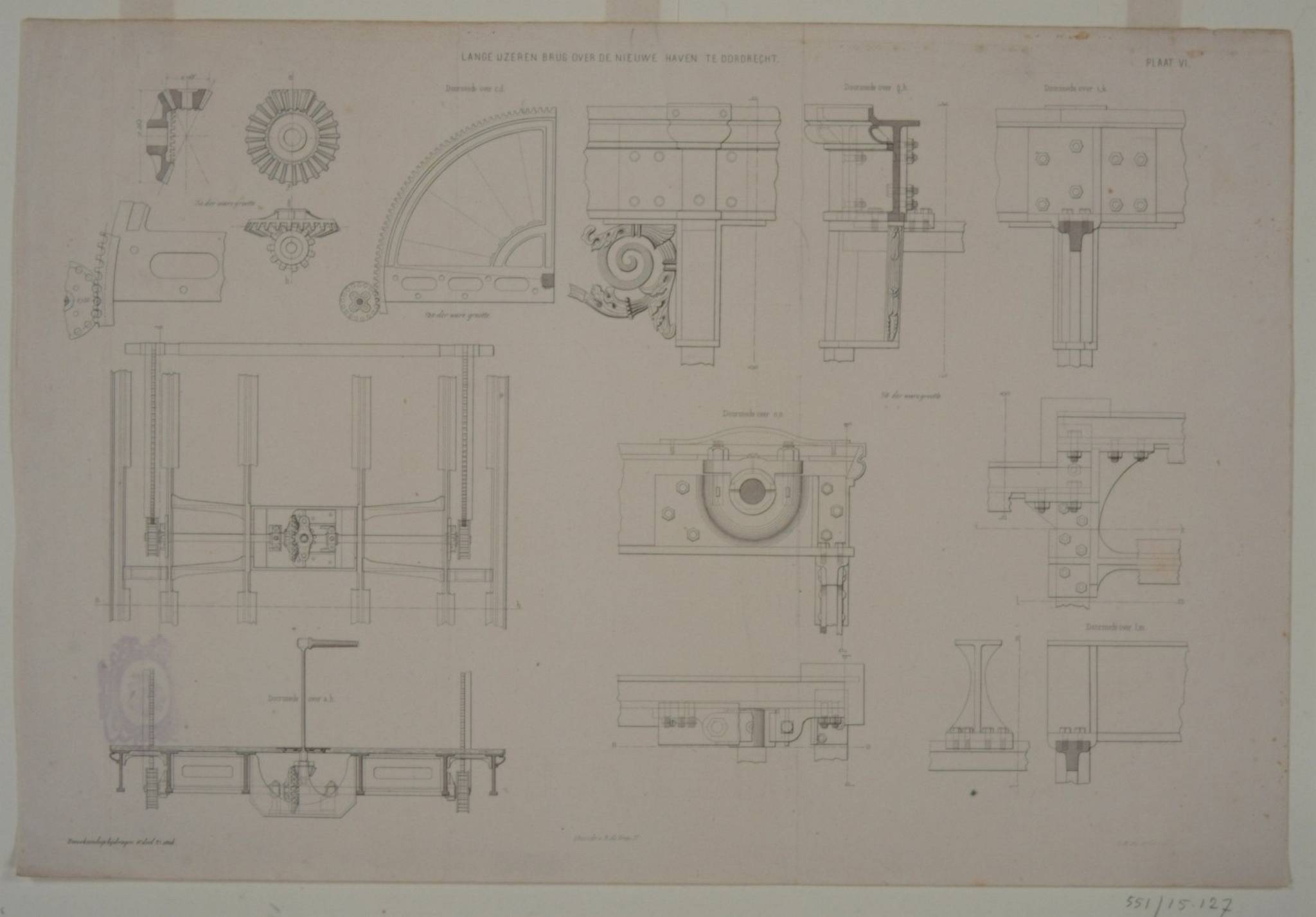 Bouwkundige tekening van de Lange IJzerenbrug over de Nieuwe Haven.