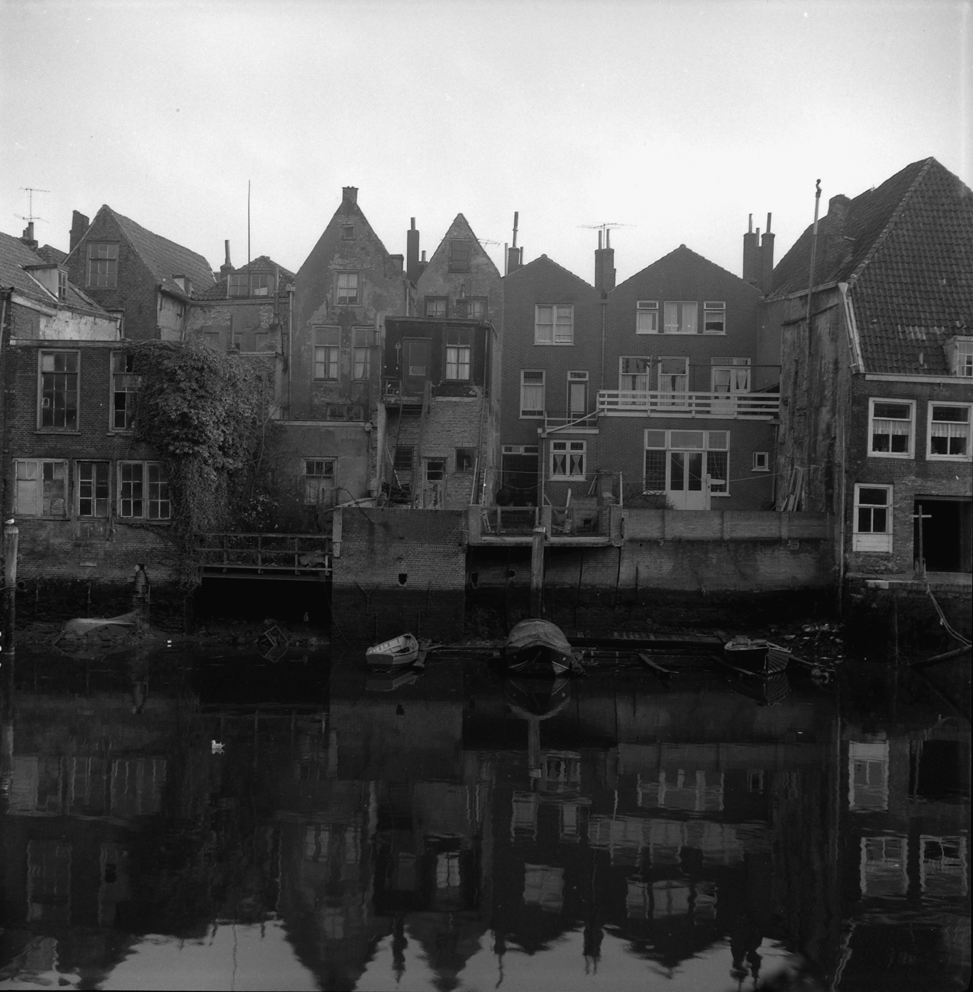 Achterkant huizen aan de Voorstraat Wijnhaven