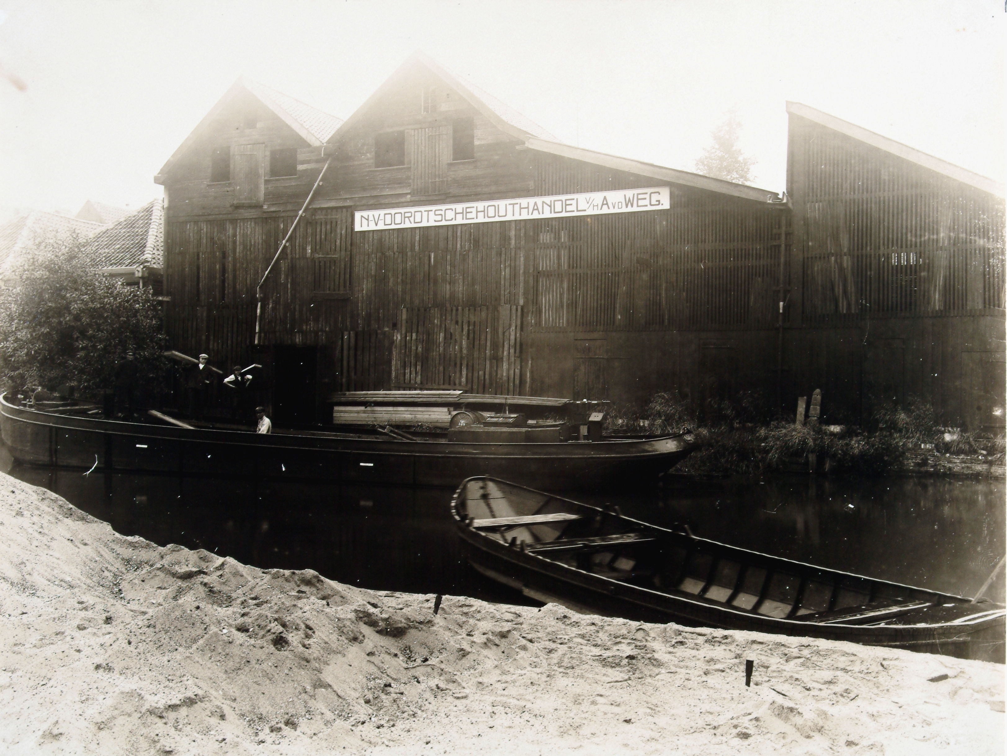 De Spuihaven met de achterzijde van de Dordtsche Houthandel Van de Weg aan het Kromhout.