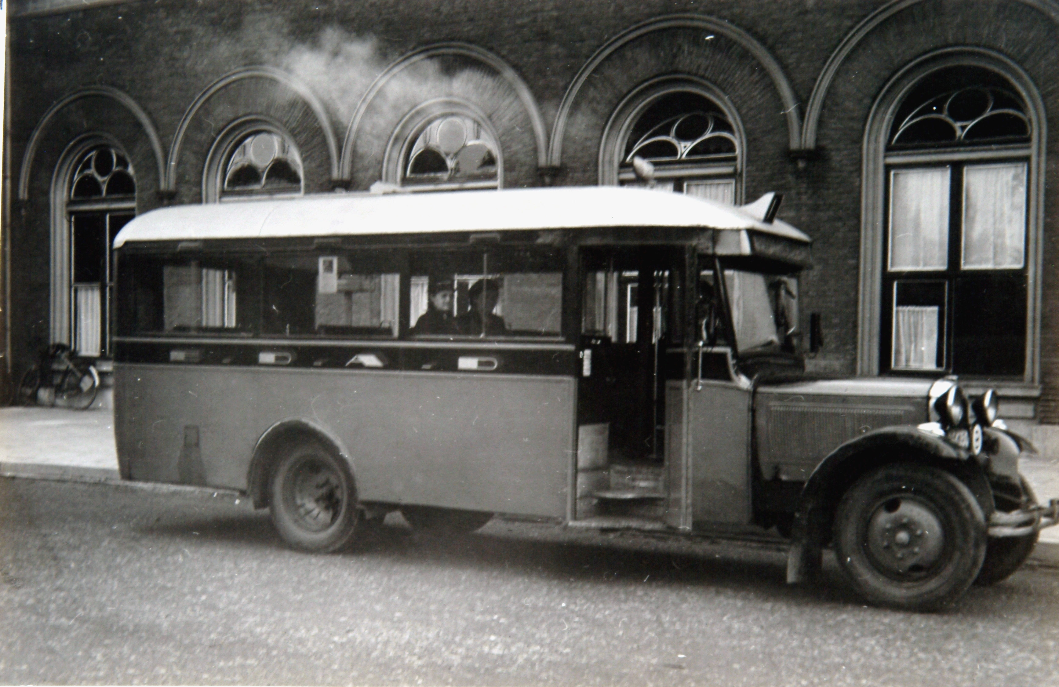 Autobus van de Eerste Dordtse Autobus Diensten (E.D.A.D.) op het Stationsplein.