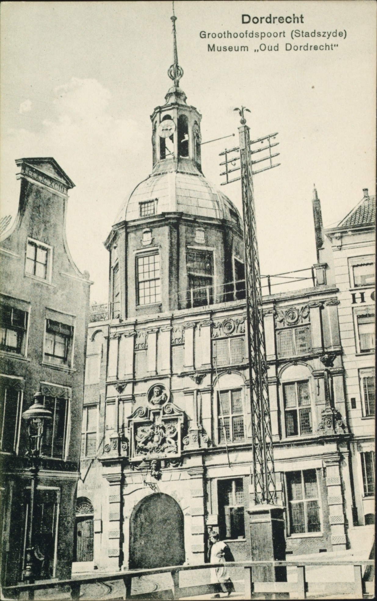- De Groothoofdspoort aan de Wijnhaven met daarnaast "Hotel Bellevue" ca. 1914.