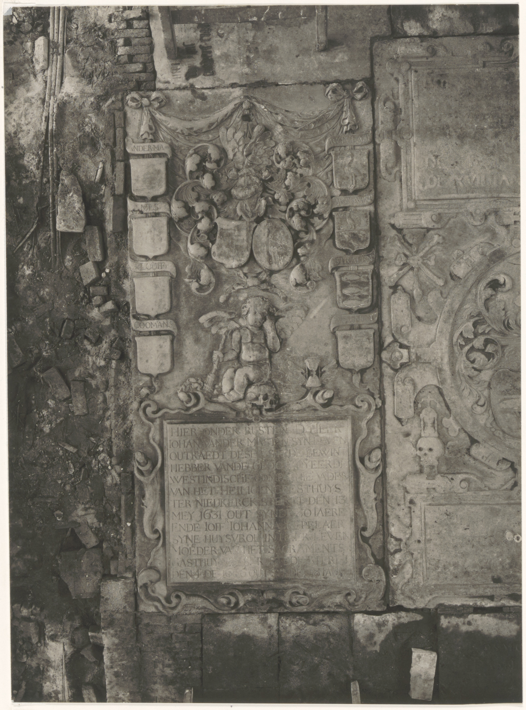 - Grafsteen in de St. Aubertuskapel van de Grote Kerk van Johan van der Mast (overleden op 13 mei 1631, 50 jaar oud), oudraad, bewindhebber van de Westindische Compagnie, vader van het Heilig Geesthuis ter Nieuwkerk, en van zijn vrouw Johanna Repelaer (overleden 4 december 1666, 78 jaar oud). Boven de tekst helmkleed en wapens van verwante families.