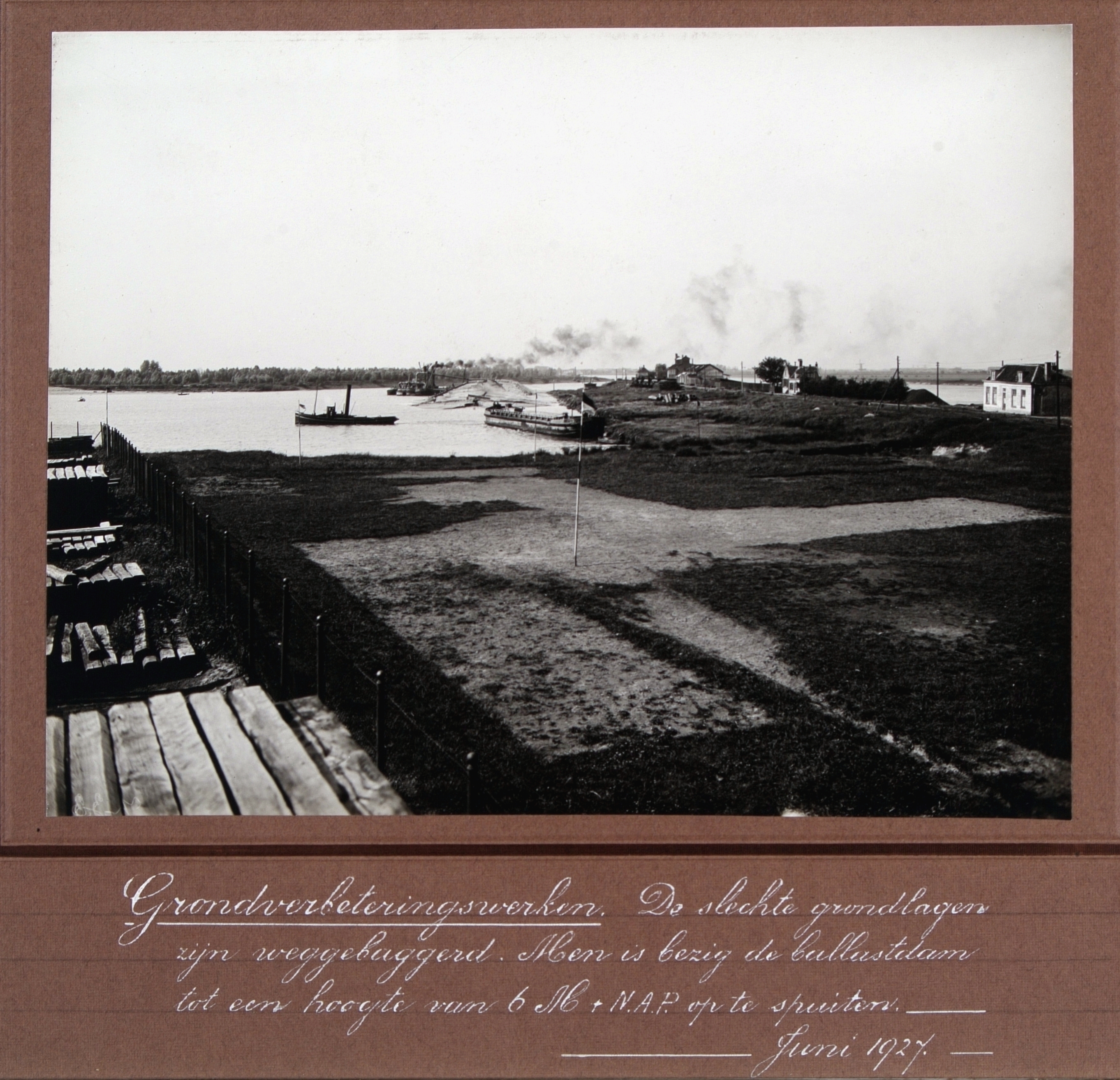 - Aanleg Wilhelminahaven. Grondverbeteringswerken; de slechte grondlagen zijn weggebaggerd; men is bezig de ballastdam tot een hoogte van 6m + NAP op te spuiten
