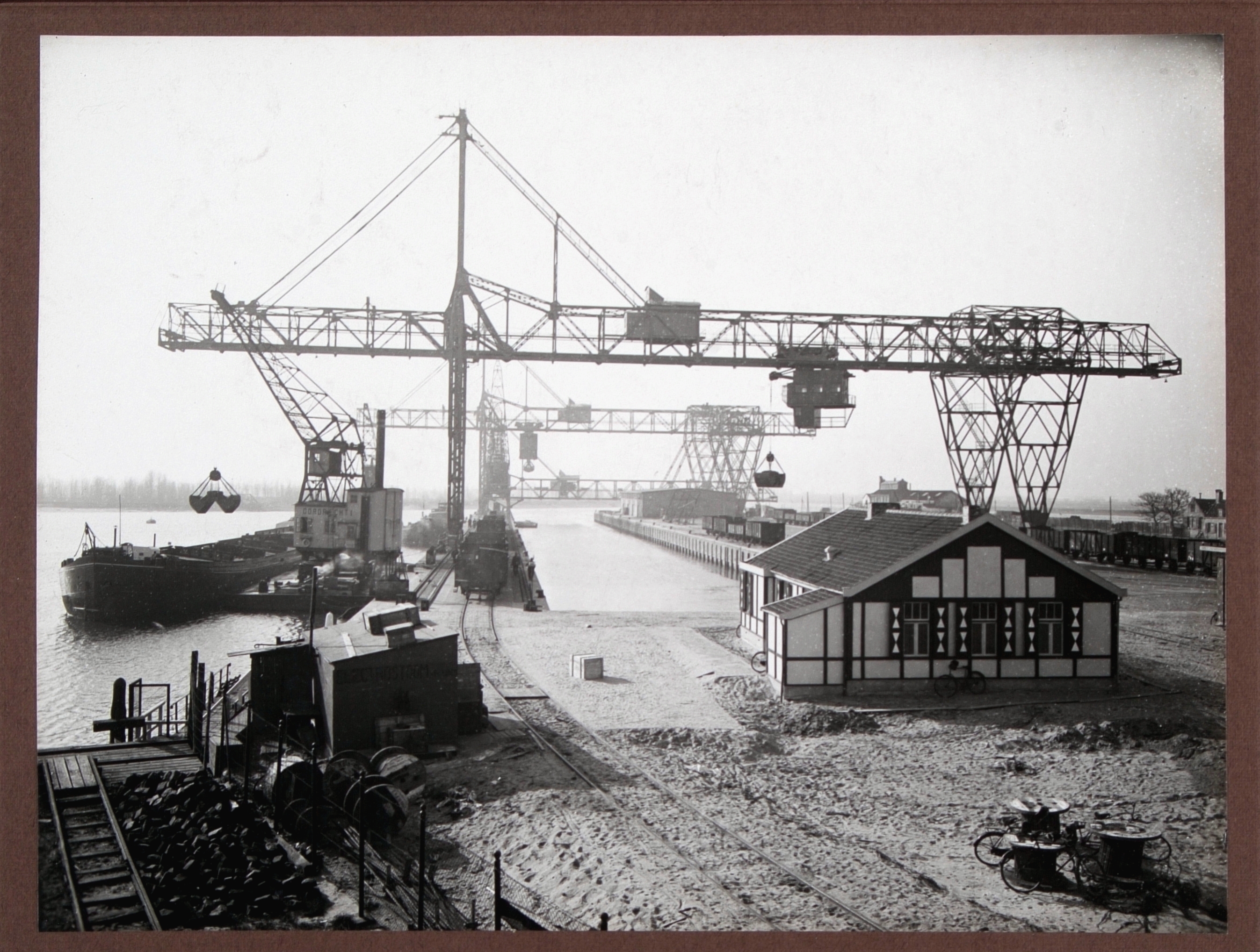 Twee los- en laadkranen in bedrijf in de Wilhelminahaven