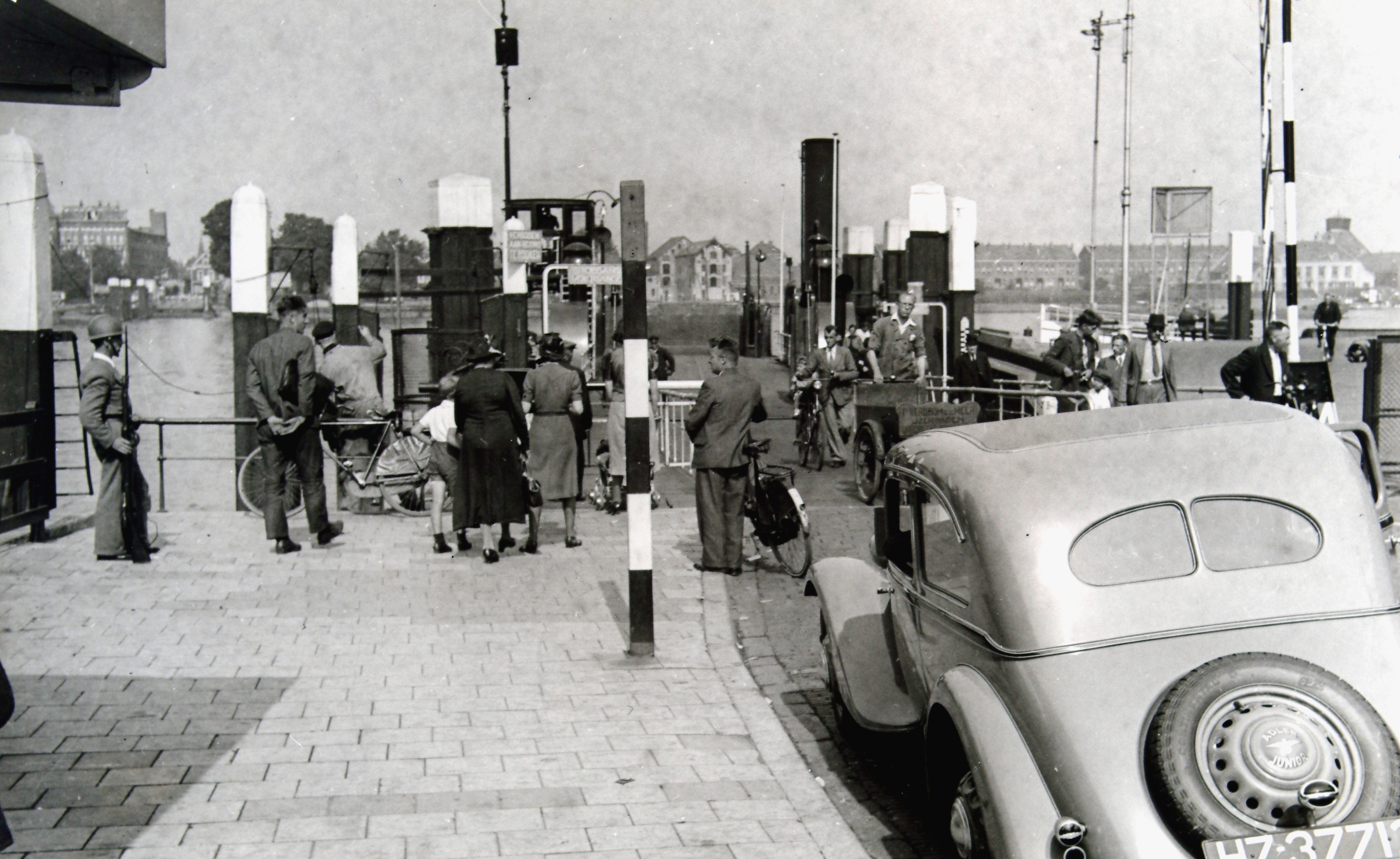 Voor mobilisatiedag. Burgerwacht aan het Zwijndrechtse veer.